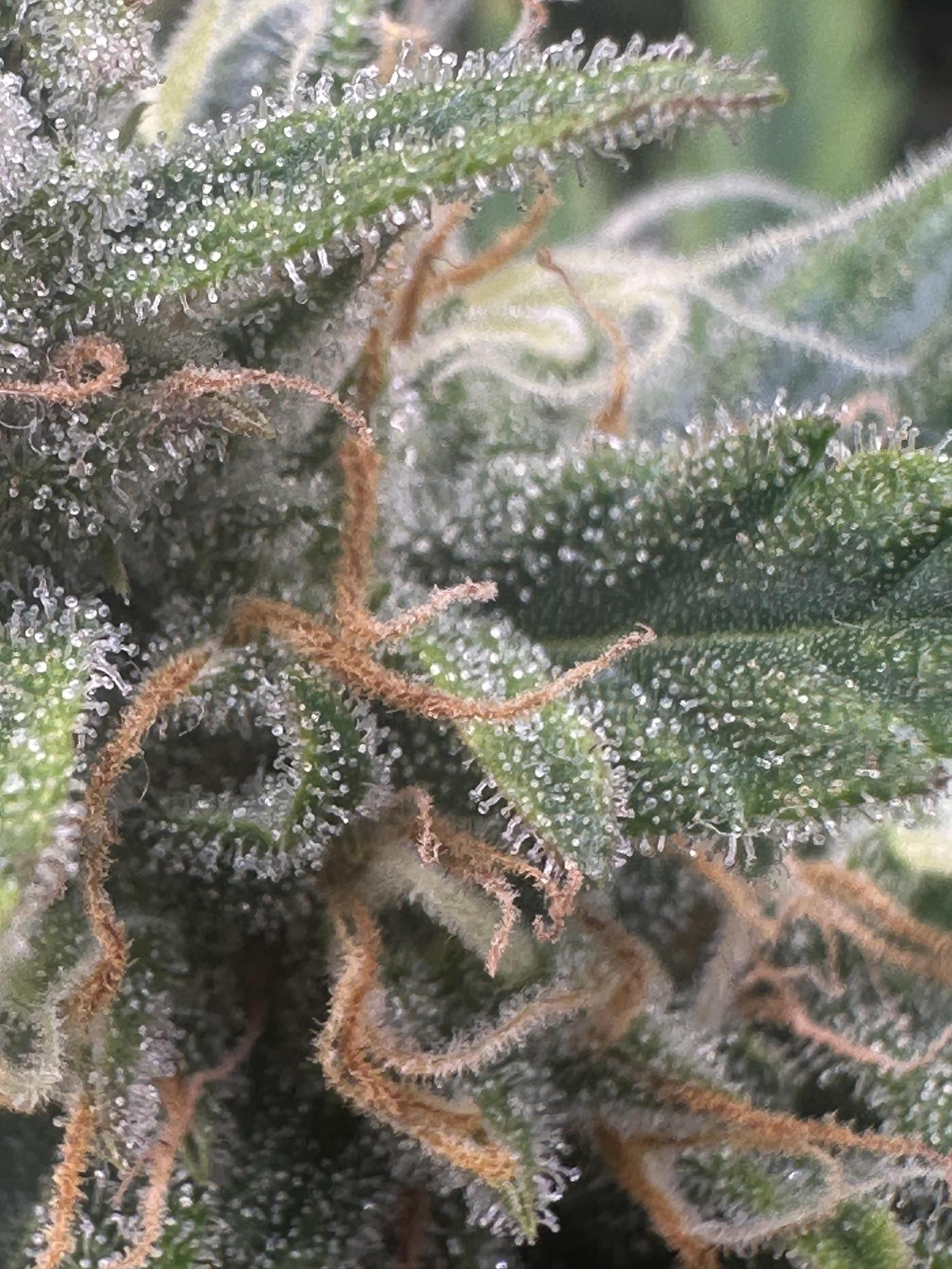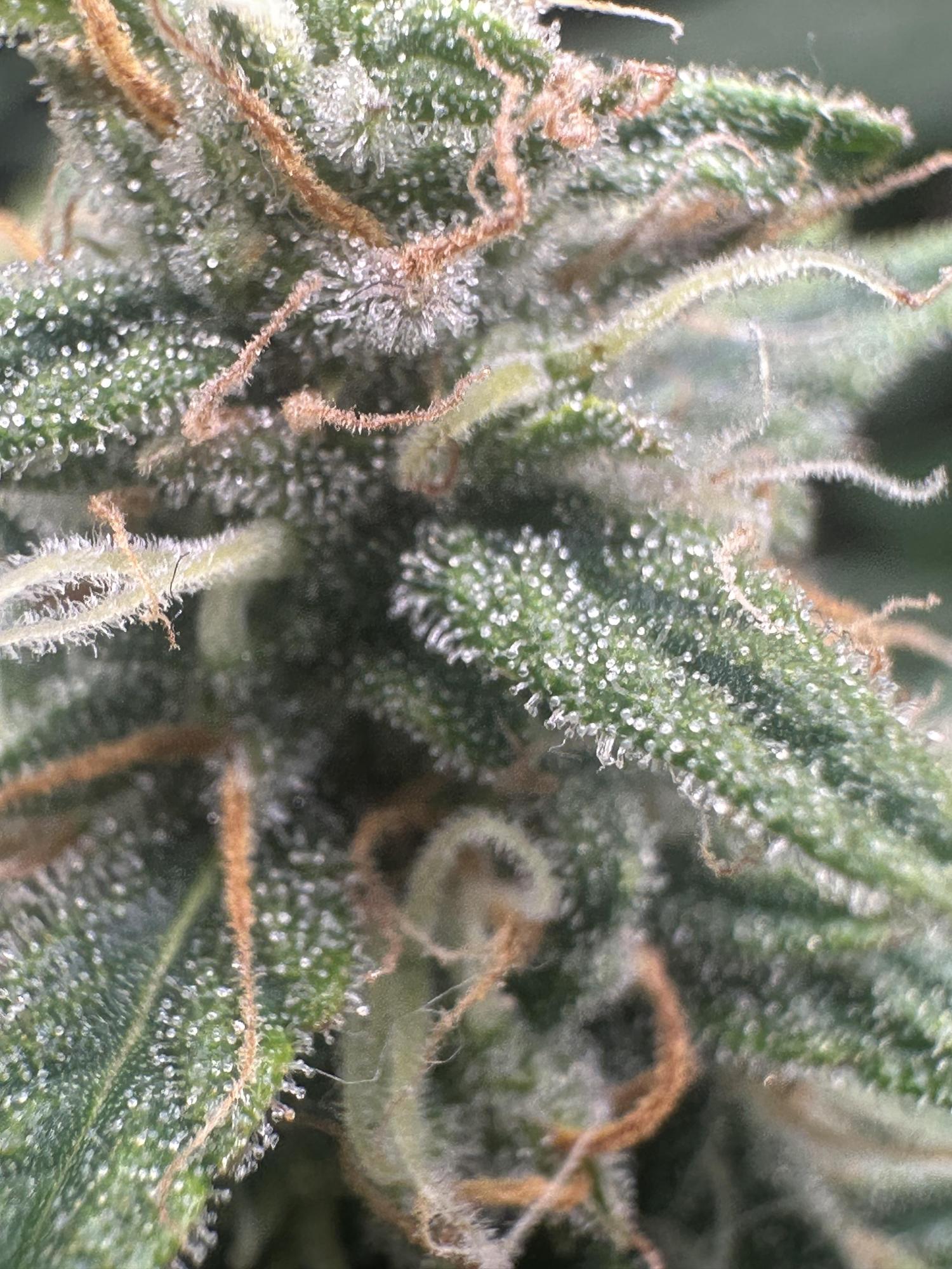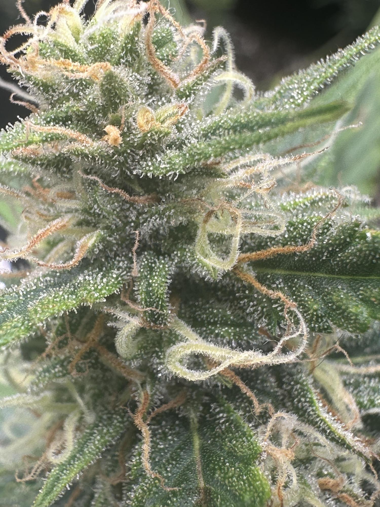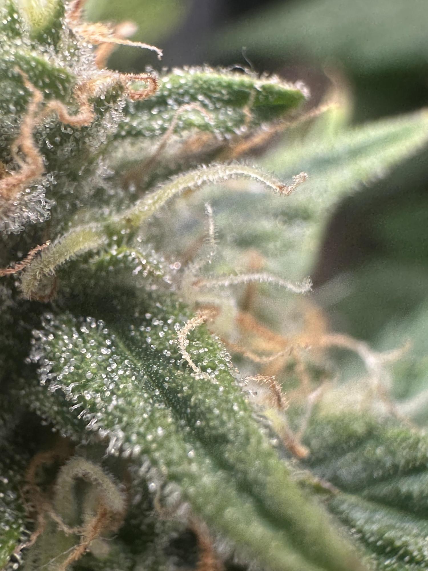 judging by the pistils, its too soon, lots of white hairs still and it doesn't look like this is from a second flush of growth. Hard to see in fine details the trichomes but most look clear still, some are starting to go milky. looking at your diary, the plant looks healthy overall and it doesn't seem like its starting to fade yet either. I'd give it 7 or 8 weeks for flowering, so 2 - 3 weeks before you can get the scissors out imo.