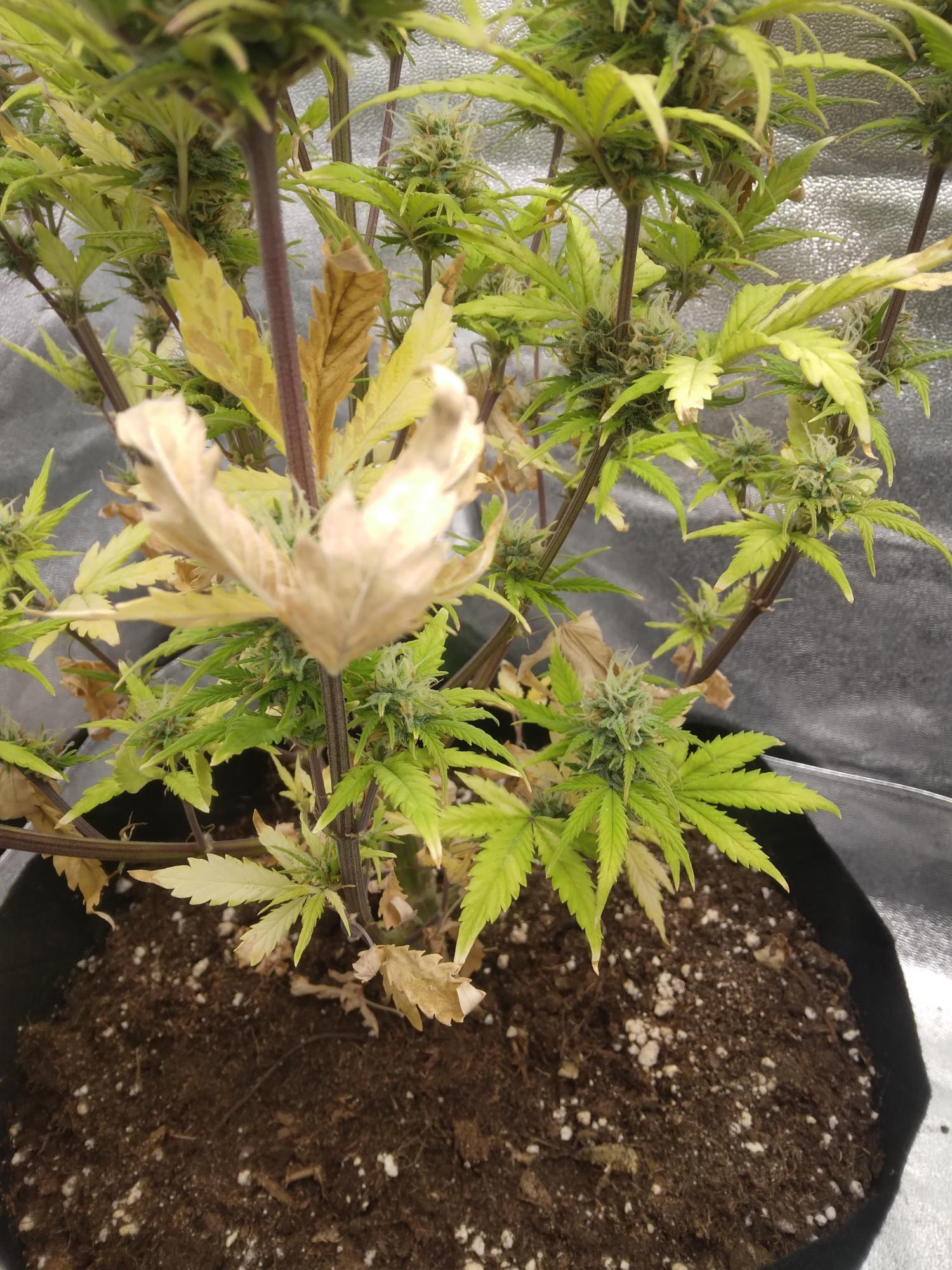 She needs Nitrogen bad! Mine do that all the time when they start flowering, I use Biobizz only.