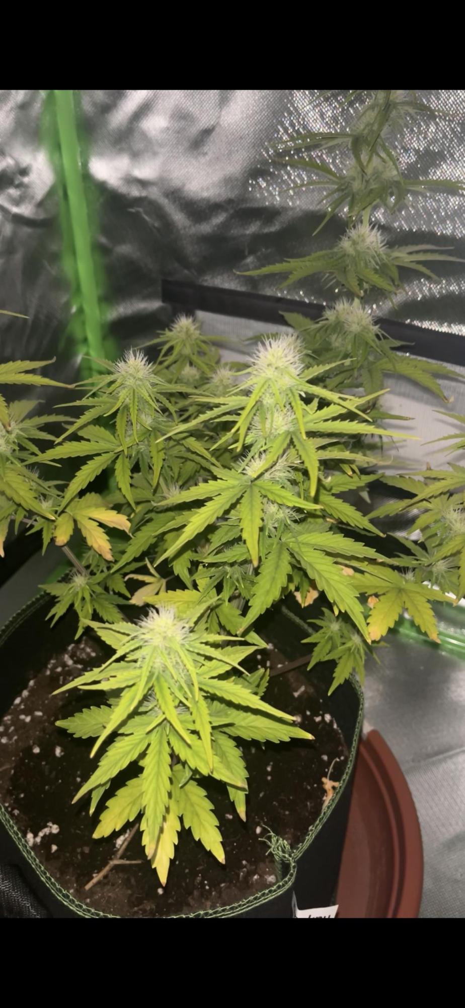 at the beginning of flowering, your plant needs more nitrogen. Give it more by either mixing half bloom fertilizer and half grow fertilizer, or by switching to a bloom nutrient that is richer in nitrogen.