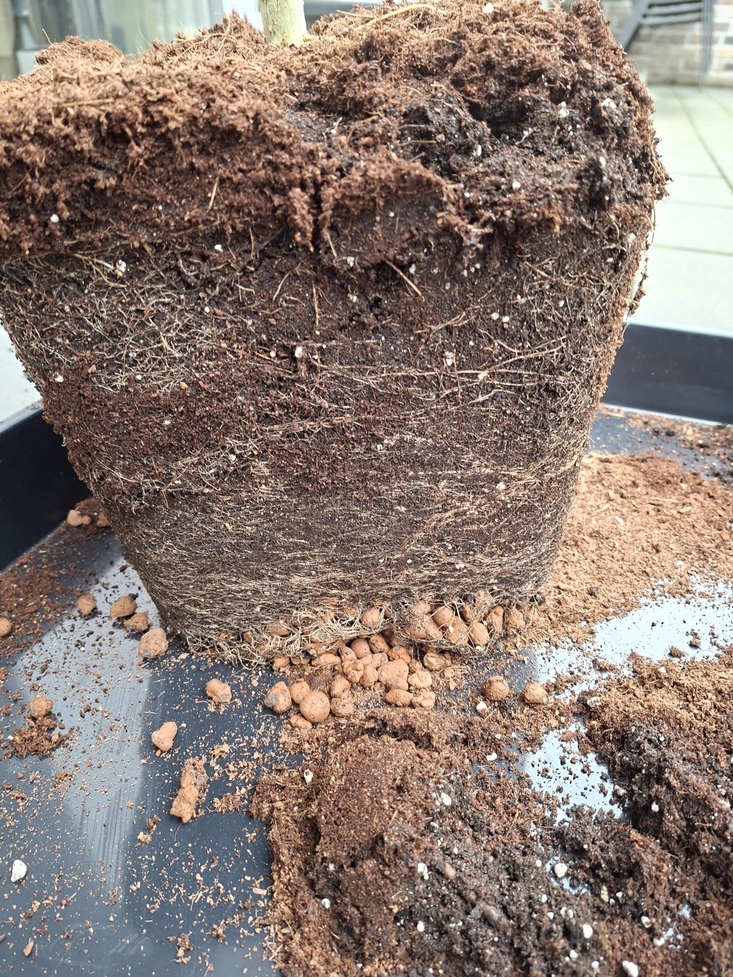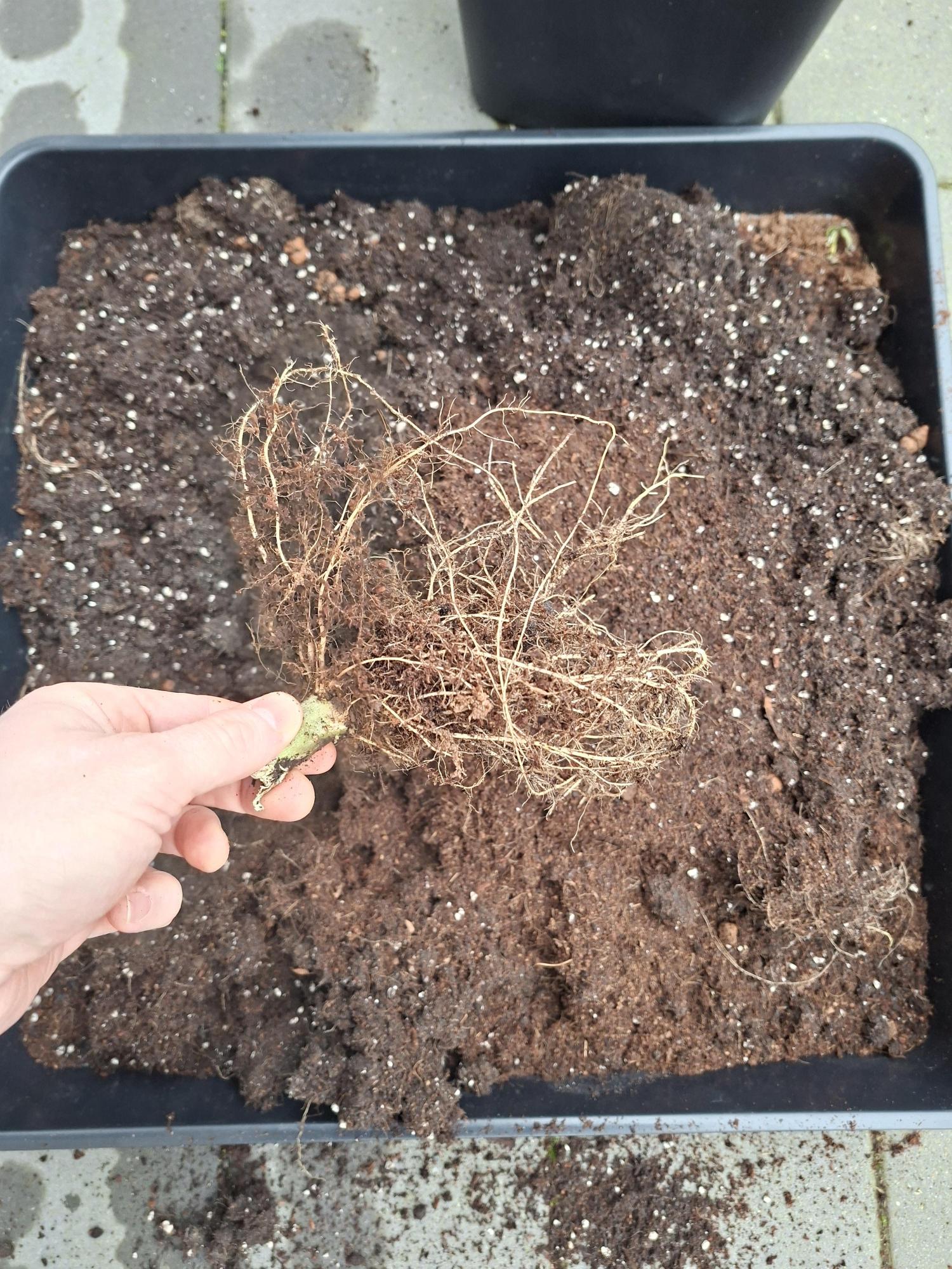 Fact you got it out a plastic pot in one piece is indication the roots are fine.