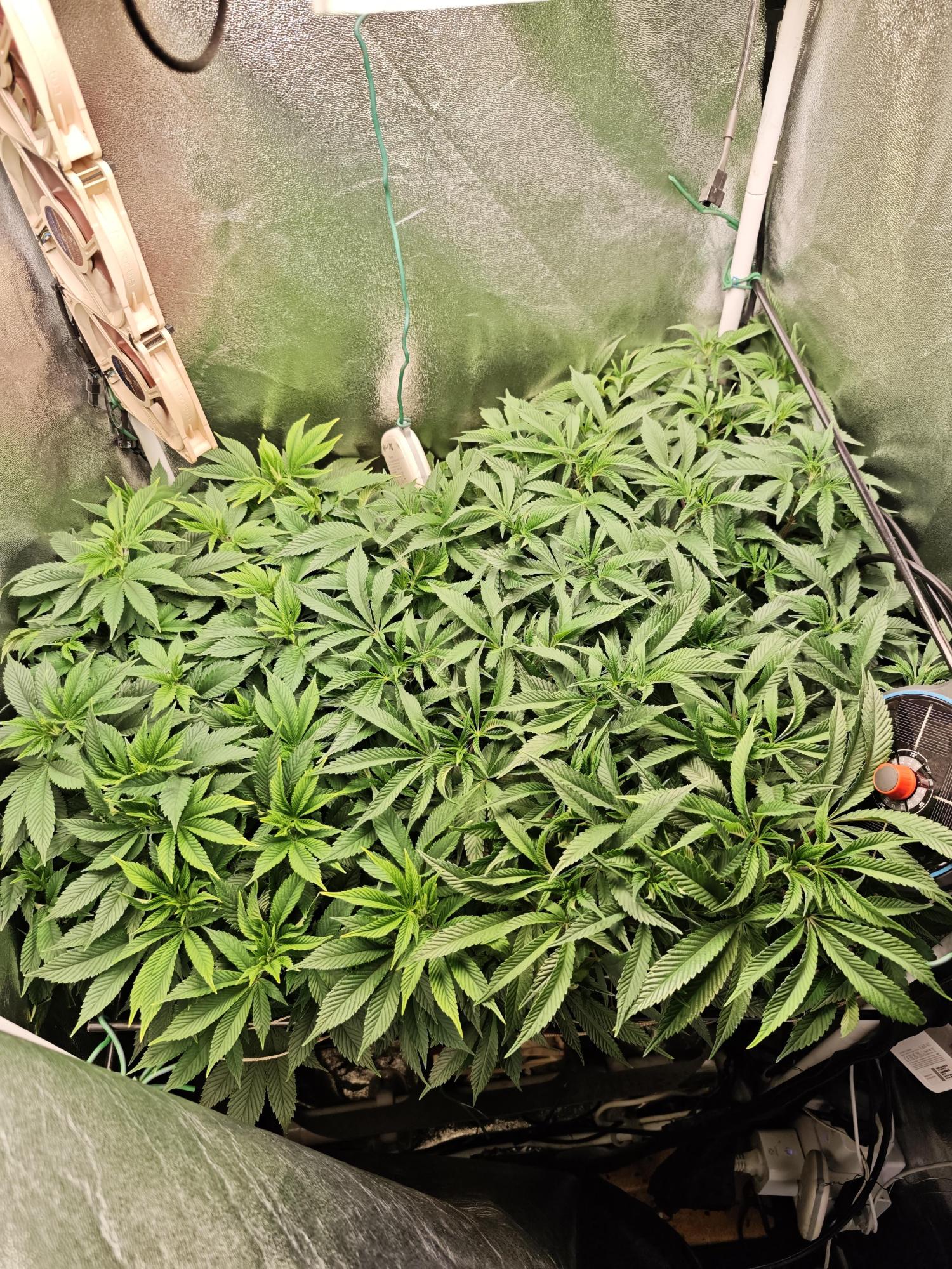 I have a small tent and I was on vacation, it got a little crowded... Can I switch them to flowering like this, or should I cut off everything that isn't higher up, i.e., at the bottom? I can control everything very well and precisely.