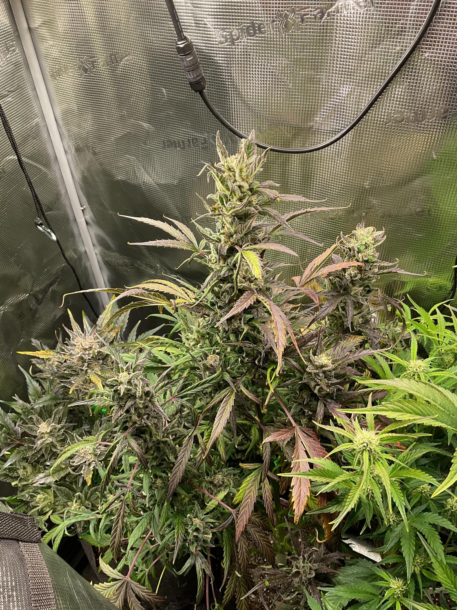 Purple colors can be accelerated by lack of nitrogen, colder temps, and excess blue light.