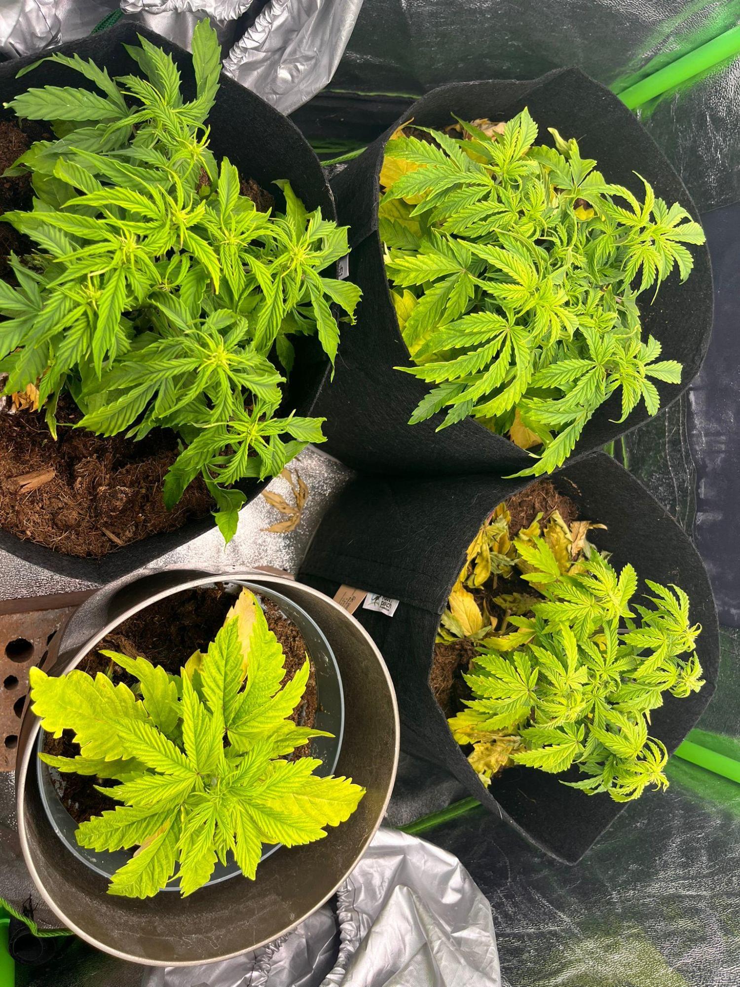 So my girls are looking real sad. Im not sure if its due to their LST or something else. They are in coco and being fed gh flora series @ 5.8ph. Temp is a steady 76F humidity ranges between 60-70%. 18/6 lights. I fees once thoroughly ever 2 days. Got some clear signs of stress.