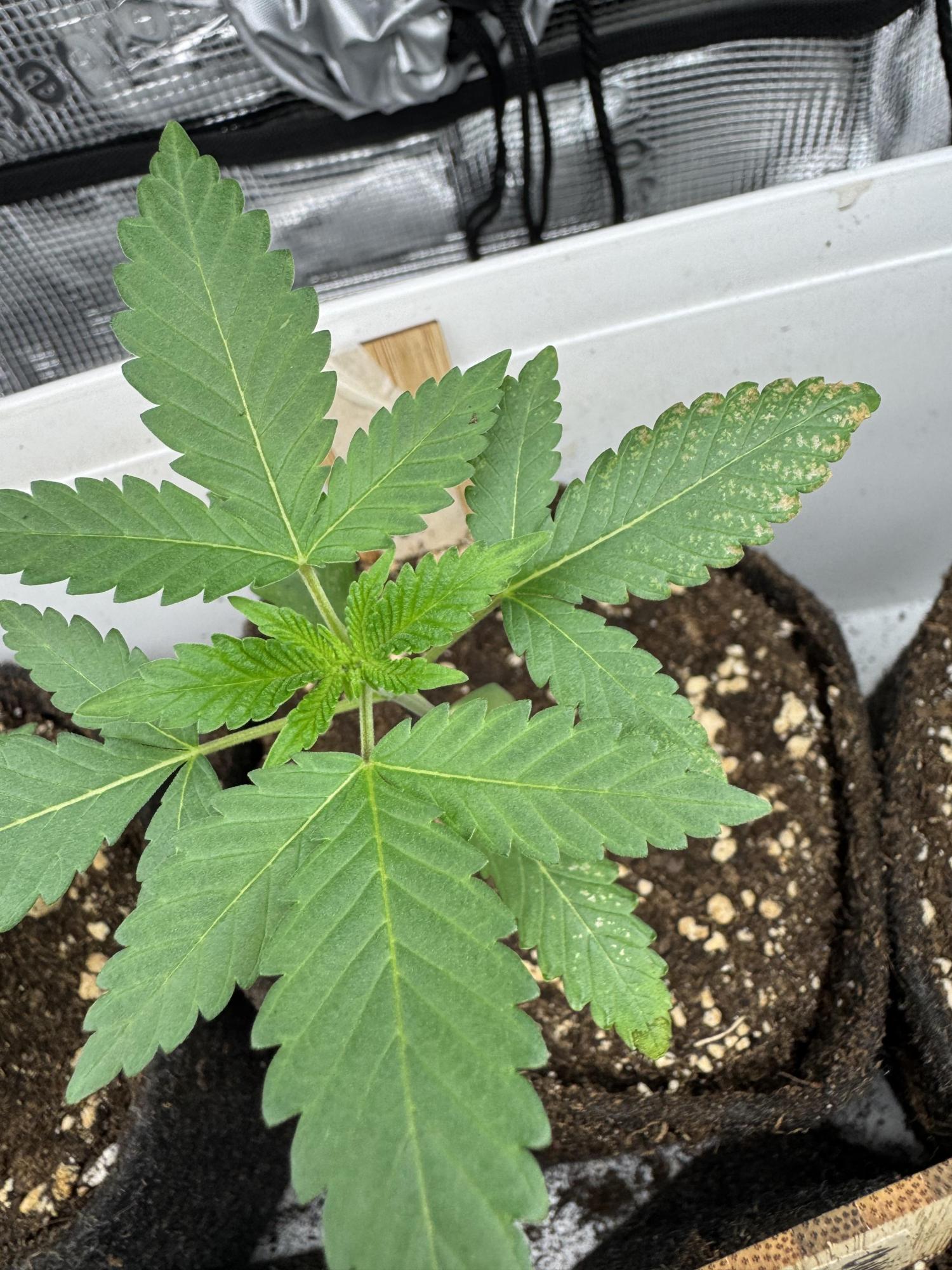Cal Mag deficiency. This is strange, particularly in fresh transplanted soil. Check pH and EC level of the soil by analyzing the drain.