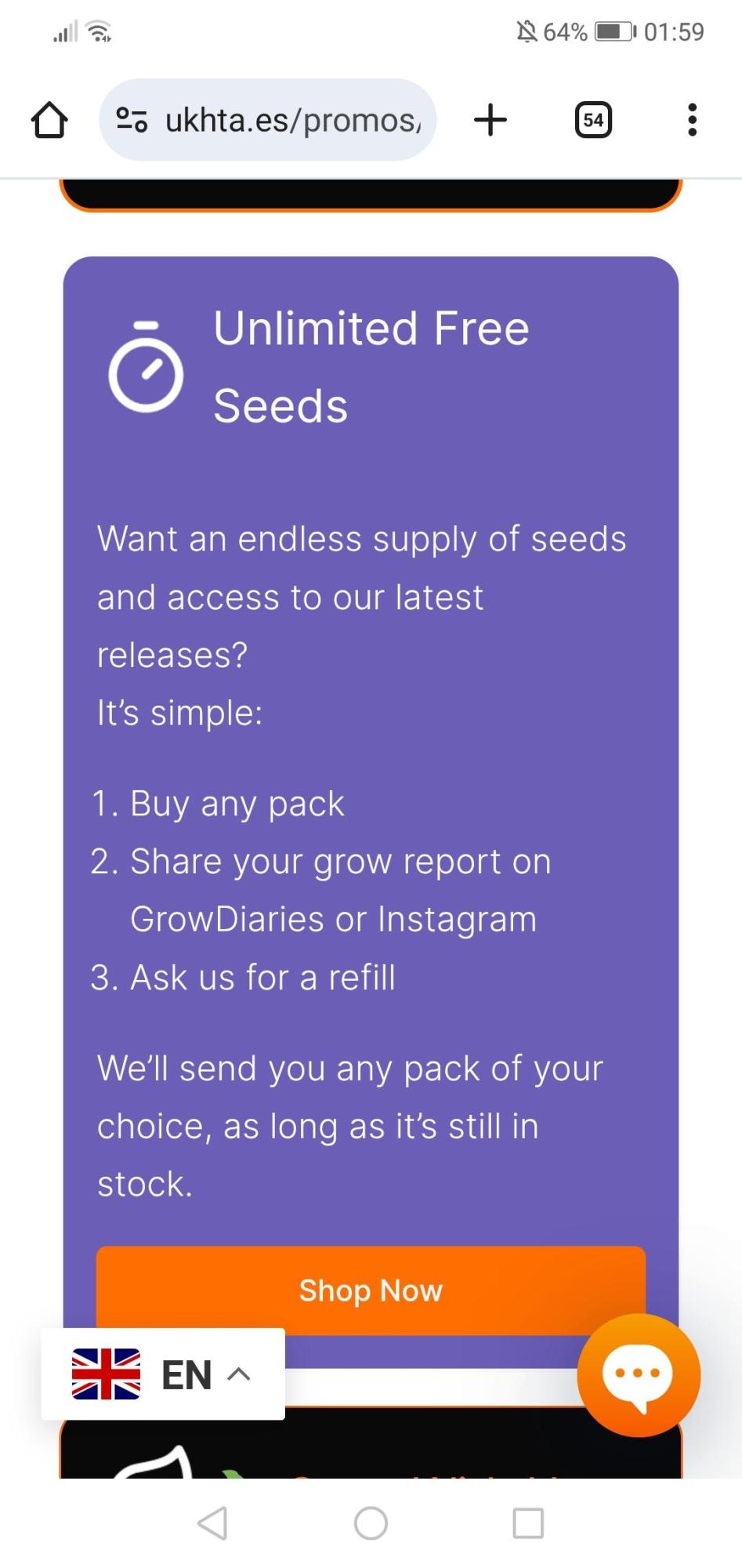 Wow thats a deal there UKHTA buy any pack of seed do the full diary on here and ask for more for free,, infinity seeds.. Never heard of that before.. I don't work there just letting people who missed it know. ✌️💚