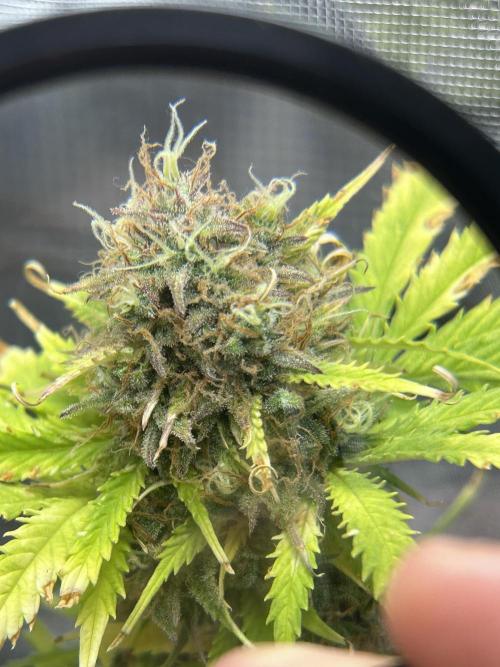 A lot of the tops have well developed amber hairs, but a few white hairs are still present, especially on lower buds where they are more abundant. I don't think I can see amber yet? Struggling with loupe slightly - I'm considering an electric scope and a tripod.