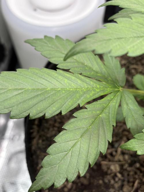 I’ve been growing for a bit but still lack experience. I’m using living soil and was told not to fertilize if the soil is under 10 weeks old. However, my plant shows issues: pale spots on the leaves and drooping tips. I suspect a phosphorus deficiency and overwatering but idk.