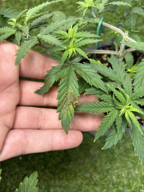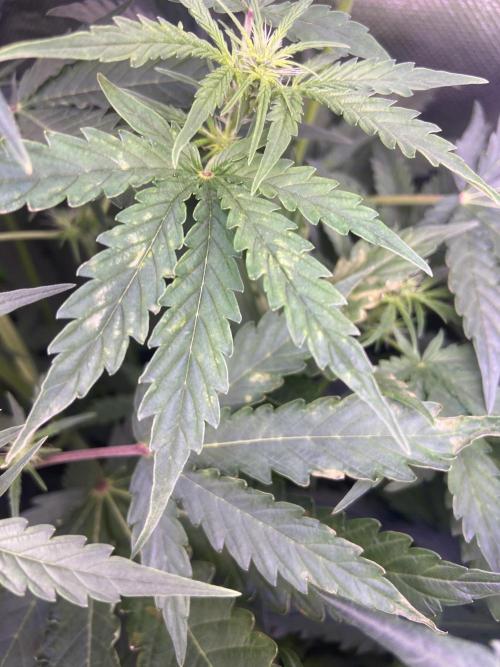 1/4 plants yellowing it’s the biggest and is the only one that fell victim to a topping in veg, N def? The interveinal stuff is making me think magnesium too? What y’all think…