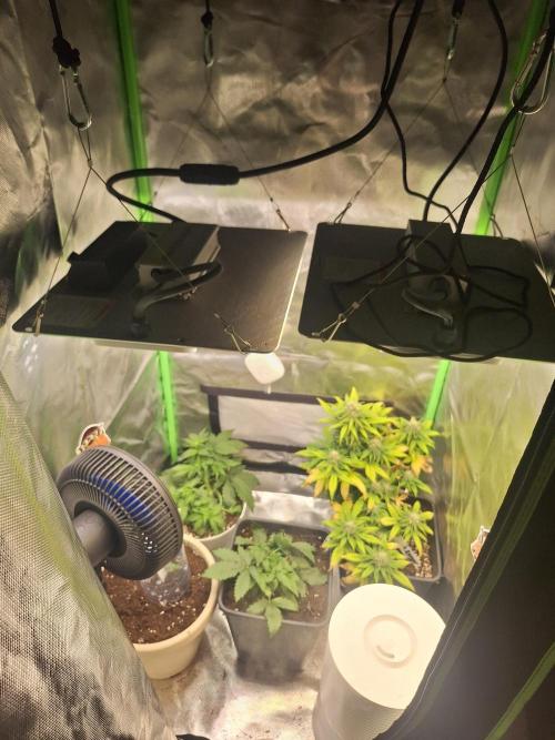 I'm growing nine Northernlights autoflowers in a 120x120 cabinet. I have three 240-watt lights. The average temperature is 24 degrees Celsius, and the humidity is between 60 and 70 degrees Celsius. I'm currently on day 19, and I started LST three days ago. Some leaves are curling