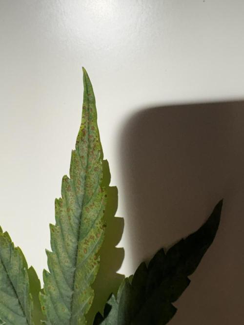 Auto Northern Light, on its 32nd day, has started to show brown spots on the leaves. Only one of the nine plants in the tent has them.