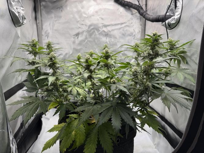 This is what my blue mystic auto looks like now, 47 days after sprouting. I have removed so far a few large yellow fan leaves about a week ago, should i get rid of more and if so when? I tucked several so 95% of bud sites are for now mostly exposed to light