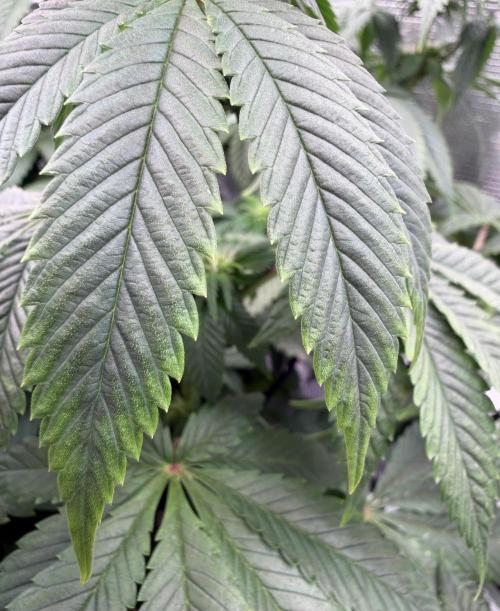 I think this is the beginning of a potassium deficiency. The near neon green discoloration is what caught my eye. This leaf is affected the most. Second week of flower. The Alga Bloom was just increased from 2 to 4ml/l earlier this week, so she should be alright. Right?