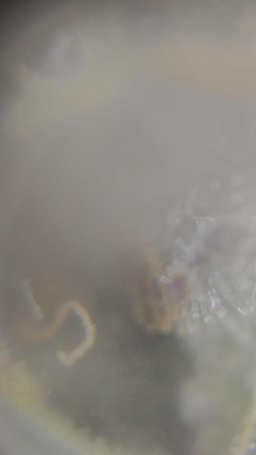 I found these crazy red bugs. This is the best I can do with the video for now 😭 the tricomes are almost all amber, and ready for harvest.
