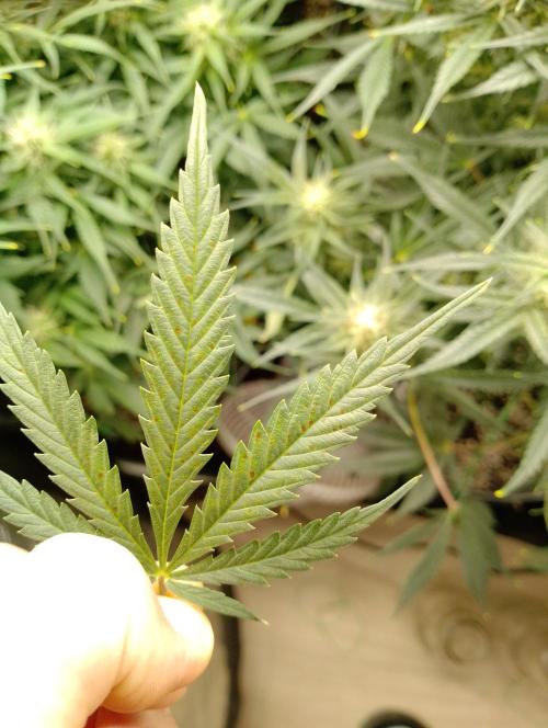 My Blue cheese F1 is acting weird she is so compact and 33cm tall I did not top her, but no a side stim is going for a stretch. Also her leaves worries me a lot of 3 fingerd leaves. She's a bit bouji Is she okay or should I help her somehow?