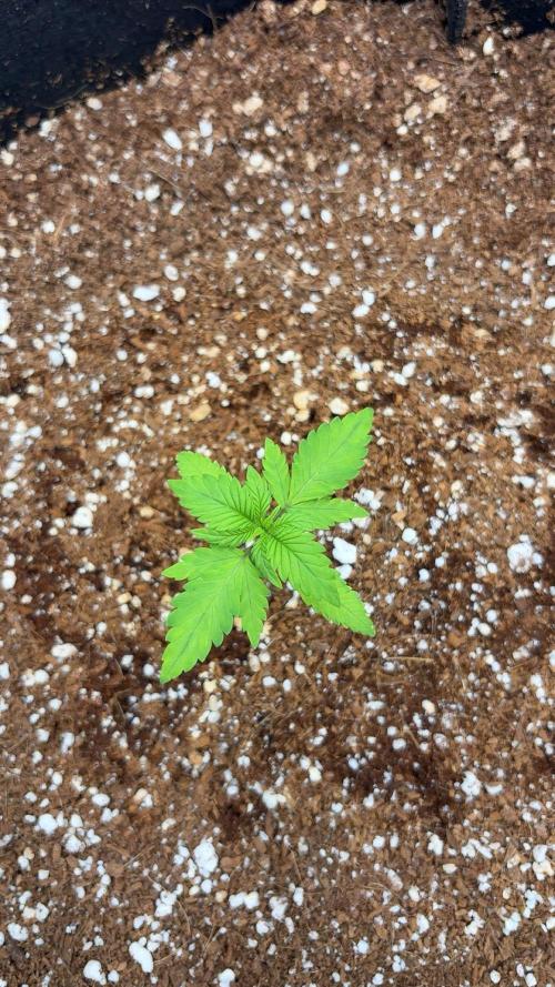 Hi guys, I planted my first photoperiod plant. Seed bank unknown, it was a gift (≈3-year-old seed). Setup: SF1000 at 80%, 24°C on / 20°C off, RH 65%, Lightmix + 5% perlite, transplanted recently into an 11L pot. After 4 weeks it’s very slow. I did LST yesterday but removed it