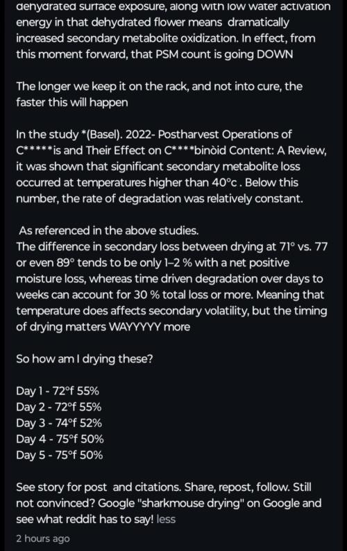 Temperatur bei 19C, Luftfeuchtigkeit bei 53%. Kann ich das im Zelt mit Lüfter (Geruch) und einem Ventilator unten so trocknen lassen? Oder lieber auseinanderschneiden und einzeln aufhängen die Triebe?