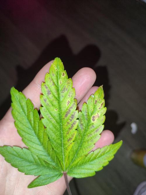 Hello fellow growers, I am entering week 5 of Bloom and for the first time ever I am seeing these purple spots on a leaf. For now its just the one leave, maybe it will spread out. I am not growing a purple strain. Anyone knows whats going on?
