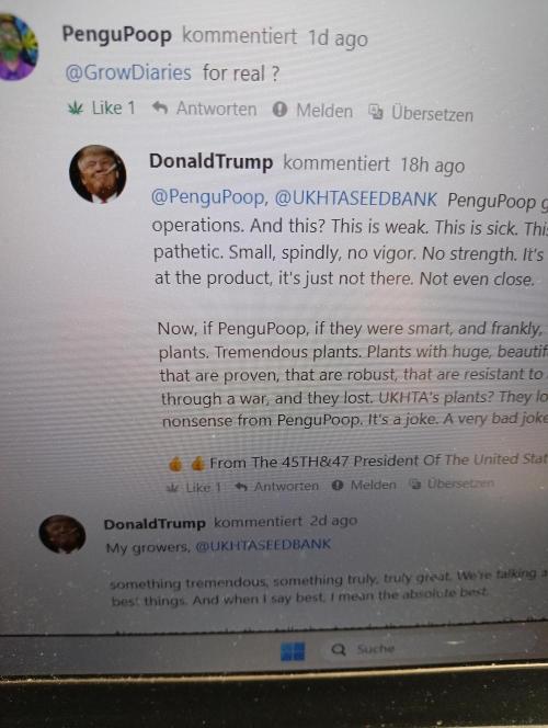 Hello Community, Lets Stop this orange President At least the Troll Here on GrowDiaries. Info@growdiaries You find him.in the comment section of grower of the month.. Dont Feed the Troll -Just Report Thank you Larimar