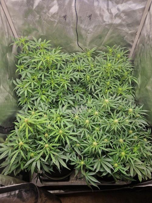 Week 3 of flower, starting to see buds form at the top site and along the branches. Also seeing trichomes forming on some of the fan leaves