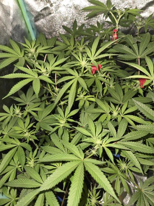 Week 3 of flower, starting to see buds form at the top site and along the branches. Also seeing trichomes forming on some of the fan leaves