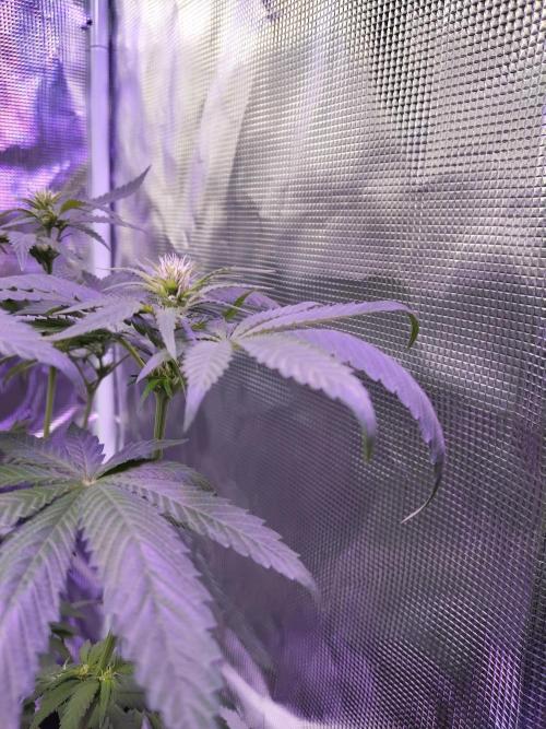 Listy jsou poškozené nahoře. 5 týden květu a na jedné kytce se objevilo tohle. Jinak zbytek zdravý. A světlo spider farmer g4500 na 100% a 40 cm vysoko. 11 litrový květináč, 4 litr vody -4,4calmag-8,8bloom-4sumo-2pk.Vstup je pH 6,5 -Ec1,6. Výstup ph6,3 -EC 2,2. Díky za radu