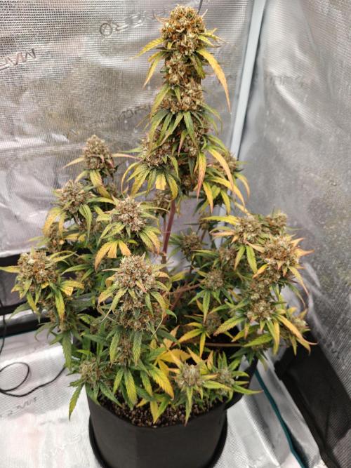 1/6 plants is yellowing since flowering. Dos si do + 1 free seed. I assume it’s the free one. I have tried everything with nutrients, PH is 6.8, temp/humidity is good. Light is vipaspectr xs4000. HF soil.