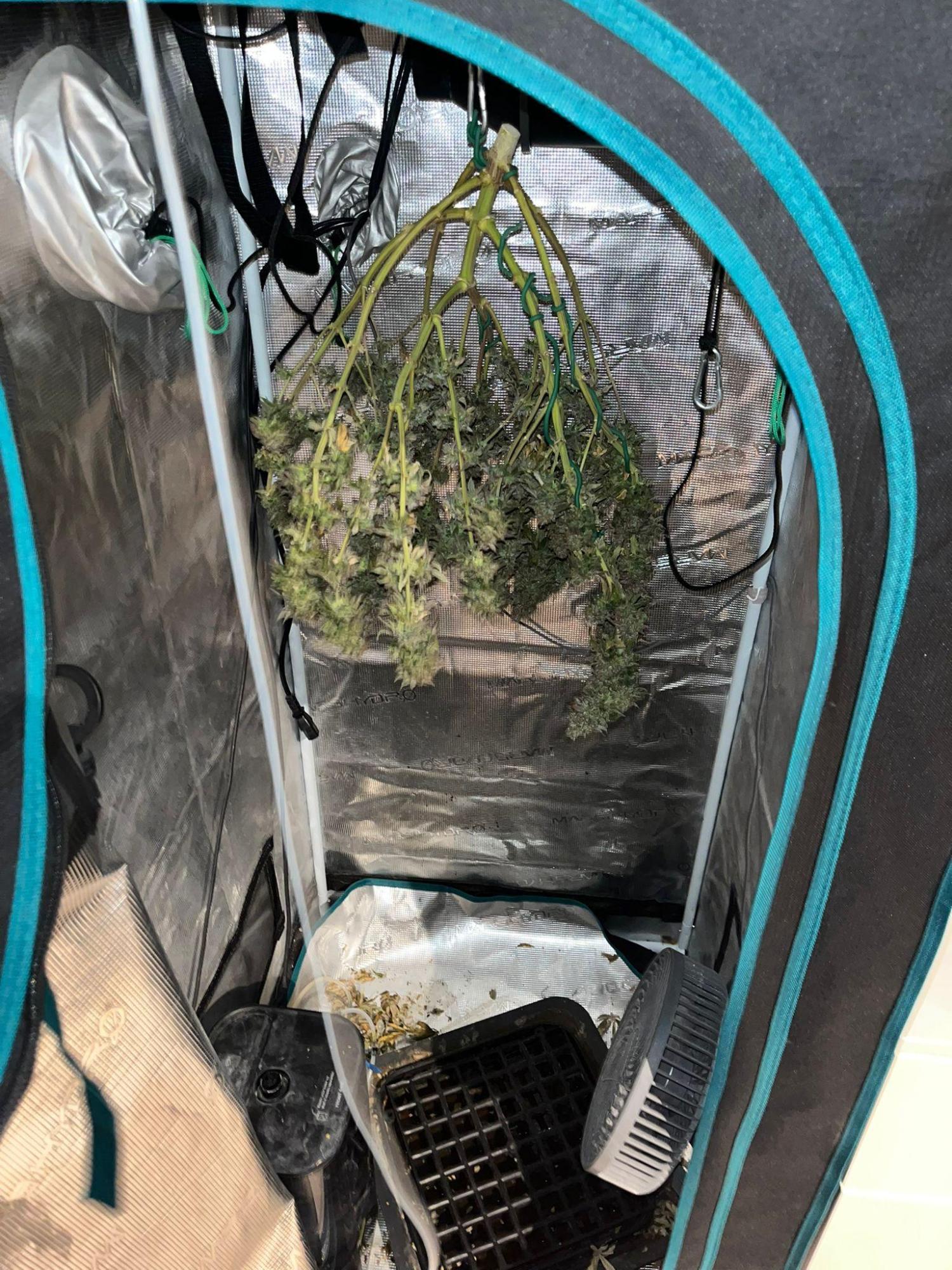 This Blue Dream strain is a grower's delight, exhibiting robust growth and the ability to produce large, sticky buds that are a visual treat with their light green color accented by blue and deep purple hues. The buds are dense and resinous, hinting at the heavy yields this strain is famous for.