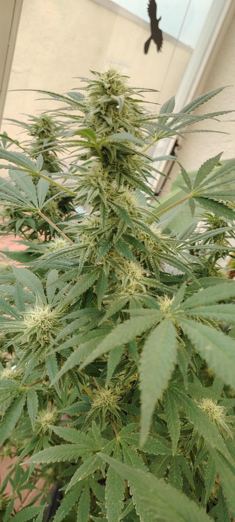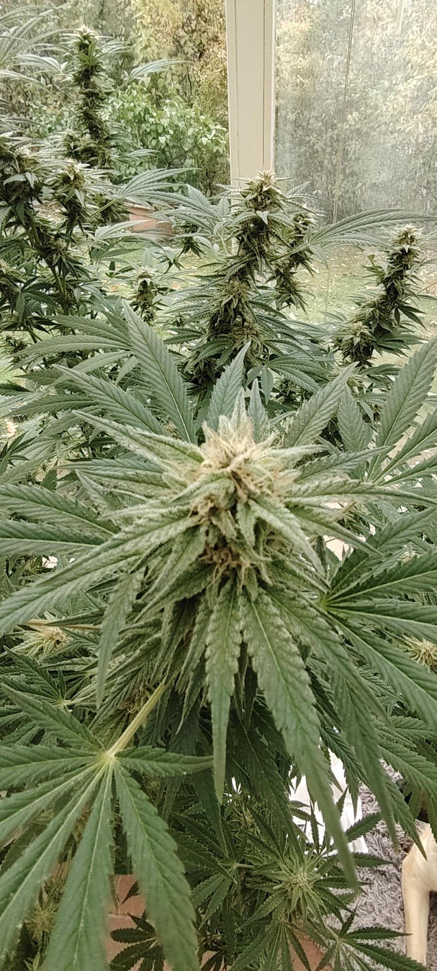 Bruce Banner strain grows into a robust plant with large, dense buds covered in a thick coat of crystalline trichomes that signal its potency. The plant reaches heights of 100-150cm indoors and up to 2.5m outdoors, flourishing in both settings. Aesthetically, it's a feast for the eyes, featuring hues of green and purple accented by fiery orange pistils.