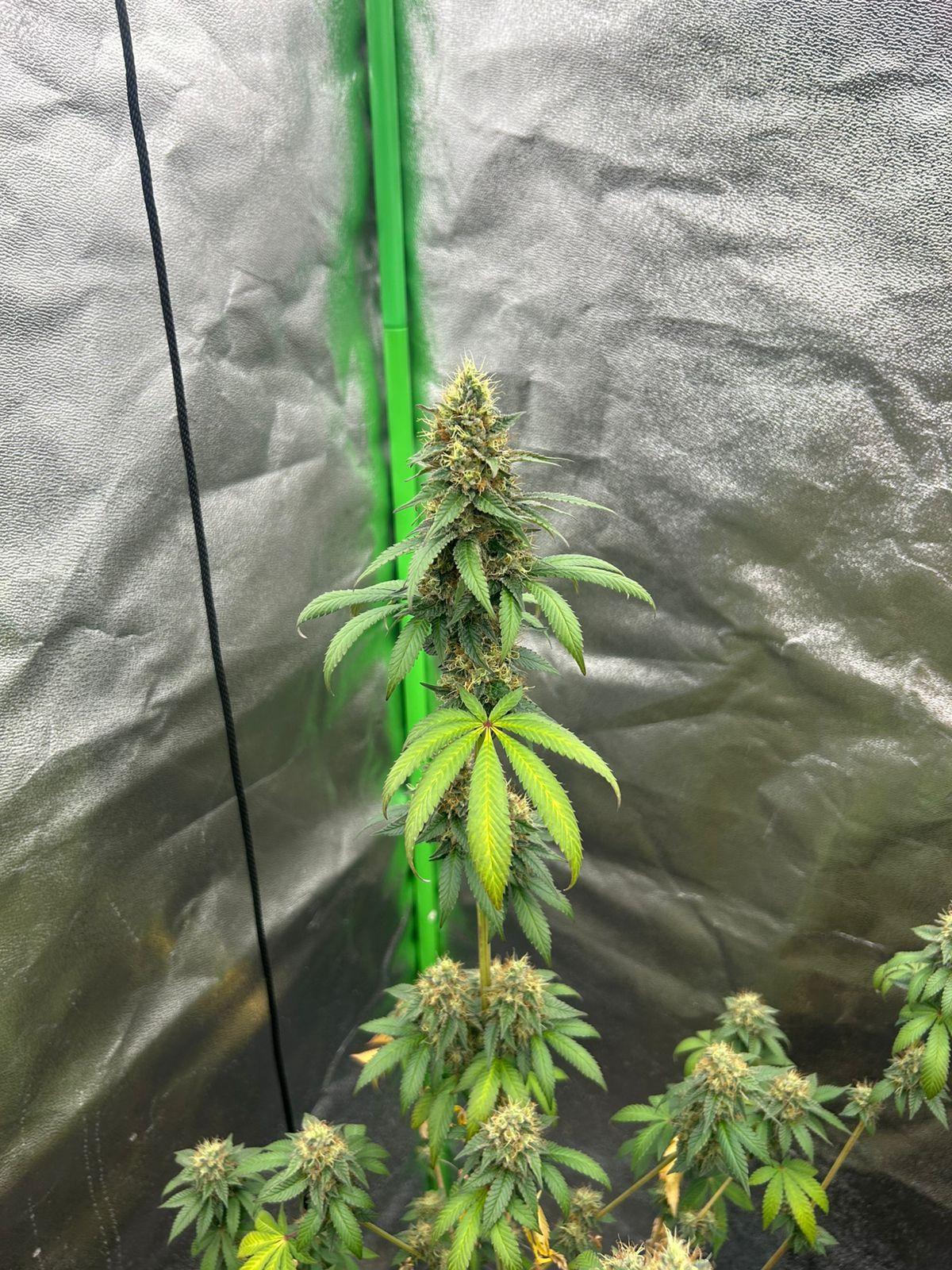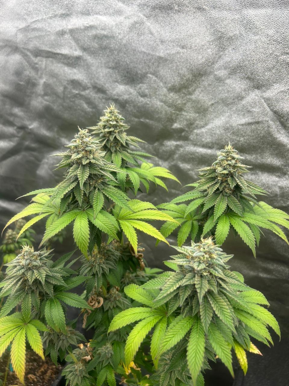 GELATO #45™ is a perfect example and execution of selective breeding from the Barney’s Farm lab. GELATO #45™ parents Sunset Sherbert and Thin Mint Girl Scout Cookies provided, after selection a beautifully balanced 60% Indica hybrid, a perfect choice for growers with all levels of experience, extremely forgiving but also very versatile for a wide range of growing techniques. GELATO #45™ has an extraordinary, unique flavour and contrasting aroma profile with subtle hints of earthy pines, flowers and skunky notes of citrus, while the deliciously sweet aromas resemble mint-chocolate ice cream and fruity sweet berries Gelato #45 is a strong robust plant reaching 100-120cm indoors given the time to grow with a flowering time of just 70days. Outdoors she can grow easily up to 2-2.5m reaching maturity by the start of October. Dark vibrant shades of lime and olive-green large fan leaves evolve during its growth then in the right hands with the final stages of flowering a spectacular array of colours emerge. With a backdrop beautiful contrasting leaves displaying deep purples, with fading reds and orange tints. Densely compacted orbital shaped buds continually swelling in size, covered deep purple sugar leaves are gradually engulfed in the swollen lime green resin glands covered with bright amber pistils and golden coating of sticky resinous trichomes as she matures.