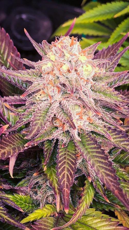 After 8-9 weeks, the plant reaches a height of about 110cm. The yield indoors will be 600g/m2. This feminized variety can also be grown outdoors, even in cool climates. The plant produces many red-purple buds. The THC level is 25%. The effect brings instant and lasting euphoria and invigorating high. The strain has a rich lime flavour with wood notes and it smells the same.