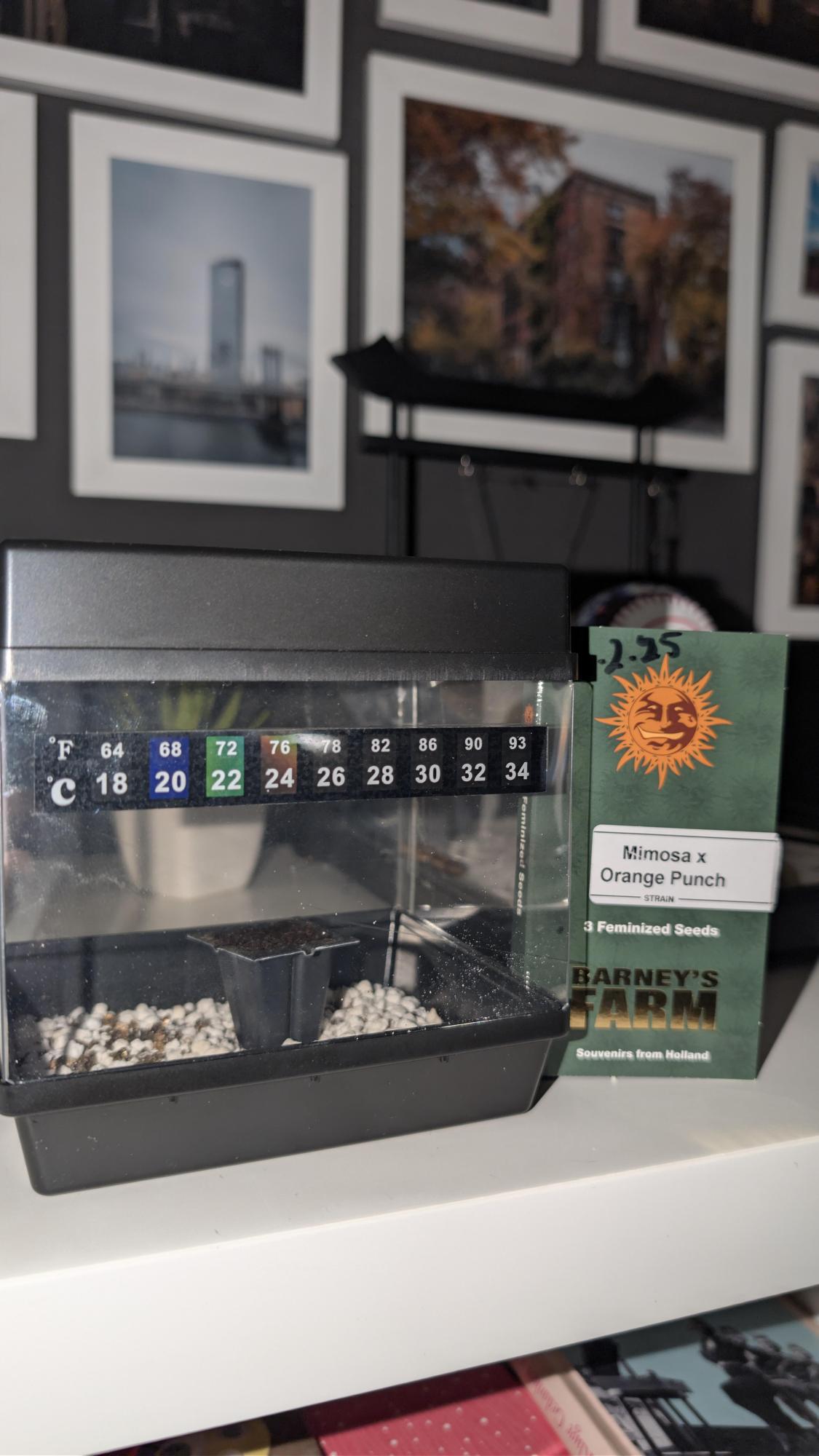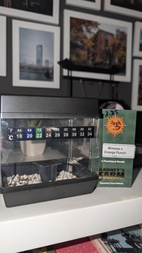 MIMOSA X ORANGE PUNCH™ by Barneys Farm The Mimosa evolution continues with this new explosive orange flavoured super compact sensation, behold another brand-new super strain from the lab at Barney’s Farm. Ingeniously created by a further careful back crossing of our famous Orange Punch with the 2020 sensation Mimosa Evo. This additional genetic infusion resulted in an astounding fast producer of gorgeous smelling bud; beta-caryophyllene, linalool and limonene terpenes create a sensational citrus-like, tangerine-candy sweet aroma. This crossing produced an extra compact plant compared to Mimosa Evo yet manages to maintain the staggering high production performance. Without a doubt one of the most colourful editions to our Cali Collection, the accompanied photos are from the BF Lab final harvest assessment and feature this elegant plant’s deep gradients of purple, such beauty is rarely seen anywhere in the plant world, a real aesthetic treat for even the most experienced grower. This champion will be an utter delight, a very sturdy plant producing multiple large dense highly resinous and heavy buds, covered in bright orange pistols just dripping in trichomes. During testing it’s been described as an indoor cultivator’s dream! A rapid flowering period of just 55 to 60 days harvesting 700g/m2. Outdoors in ideal conditions MIMOSA X ORANGE PUNCH™ reaches heights of 1.5m – 1.8 metres producing in excess of 1.5kg of huge very compact colas of exquisite and delicious cannabis. At harvest time the enjoyment of this strain really goes up a notch, dense heavy buds are extremely easy to manicure and with the onset of the ever-increasing delicious citrusy candy orange aromas come to life. THC has been tested at an incredible 30%.