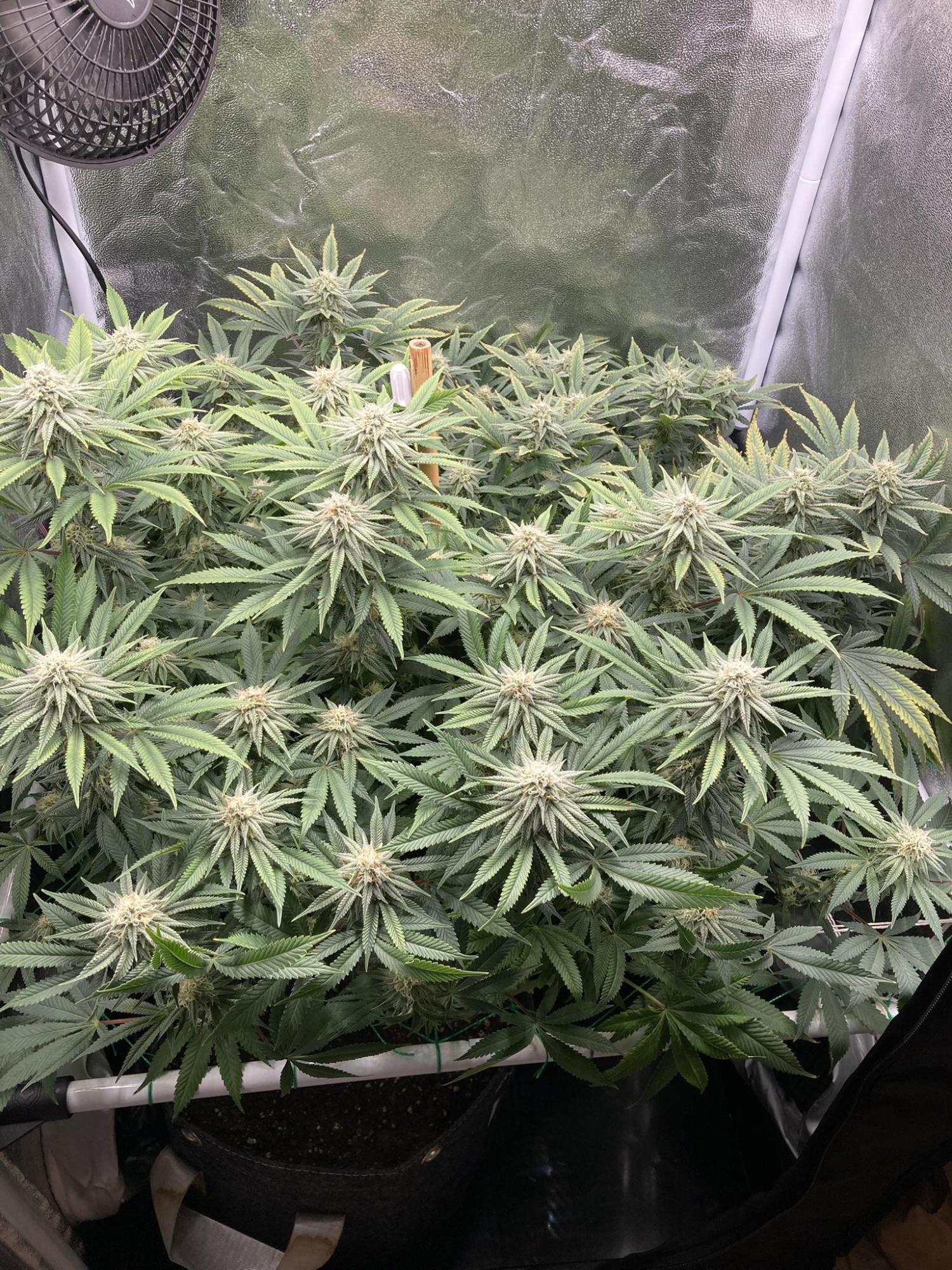 Expect a Short stocky plant with numerous astonishing trichome laden, high yielding branches just dripping with resin tested at 25% THC. This plant has a serious genetic steroid issue!!! It will flower in 50-60- days, reach 1.5M outdoors and produce up to 2kg
