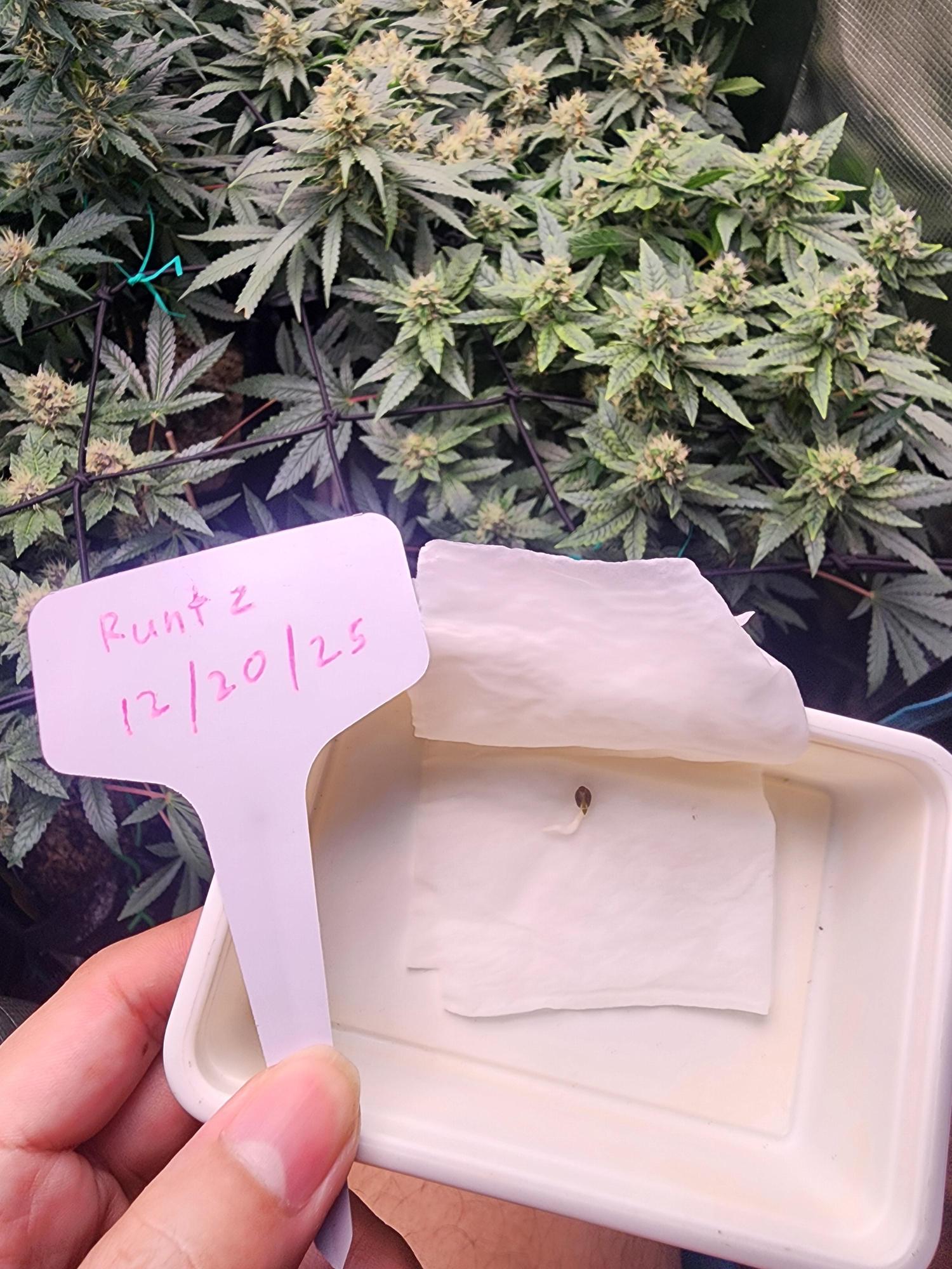 Allow me to tantalize your senses with the allure of our Runtz strain, a hybrid strain that is the epitome of premium cannabis. This seductive strain is the result of crossing two classic cultivars, Zkittlez and Gelato, resulting in a divine creation that is sure to leave you spellbound. Runtz is a fast-growing plant, maturing in just 55-60 days, with a modest indoor height of .9m-1.10m and an outdoor height of 1.5m-2.0m. However, don't let its size fool you, as this exquisite plant is renowned for its incredibly high THC levels, ranging from 25 to a mind-blowing 29%. Indulge in the sweet and fruity aroma of Runtz's terpenes, with a tantalizing hint of sour citrus that lingers on the palate long after the first puff. The strain's impressive indoor output of 550g/m2 and up to 1.5kg outdoor yield showcase its capacity to produce thick and resinous buds that are as visually attractive as they are potent. The buds are covered in a solid layer of trichomes, giving them a glittering frosty look that is sure to captivate your senses. Runtz offers an unparalleled sensory experience, with its unique terpene profile, potent THC percentages, and high yields making it a strain that is definitely worth experiencing. Surrender yourself to the enchanting jewels of our Runtz strain today!
