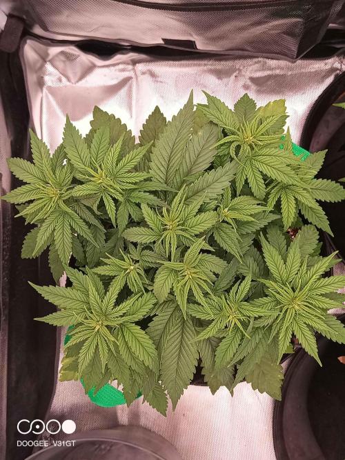 The plant develops a sativa structure with lots of lateral branches. It is ideal for pruning and ScrOG technique. The strain requires enought space for good flowering. The harvest comes only in 7 weeks of blooming and brings decent yields of aromatic buds. The average crop is 400-450 gr/m2 indoors and 500 gr/plant outdoors.