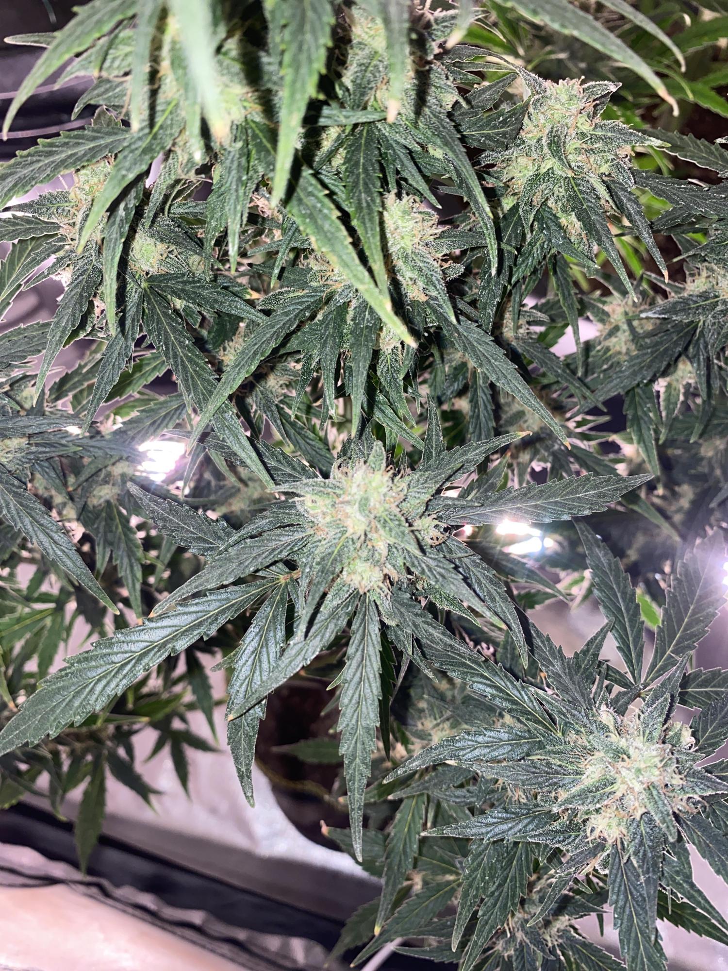 Type:75% Indica Flowering:56 days THC:21% Harvest:350 - 500 g/m2 Height:50 - 90 cm Sometimes cultivation is only possible, if the whole process is quick and stealthy. Exactly for such purposes strains like Auto 77 Days are developed! We can proudly say that short ripening time, high stability and small size are not the only pluses that this hybrid can boast. This is partly the reason why Divine Seeds crew has decided to keep the exact geographical origin of Auto 77 Days in secret. But some information can be shared: a special population of Central Asian cannabis was crossed with Canadian Ruderalis, then after several back-crossings the result was stabilized and admired as a fast, compact and rather resinous variety that tends to run through its life cycle in 11 weeks. Novice growers should definitely choose this strain or something alike for their first experiences: both hardy and simple in handling, Auto 77 Days will show the result of your work unbelievably soon! There is probably no other variety at market combining such rapid ripening with the potency that Auto 77 Days shows. If using pots for growing, you can do with 10 litres space for each plant, whilst at an outdoor plantation Auto 77 Days bushes can be located with 0.65 m distance between each other – quite tightly. The musky odor is not zero-level, but more discreet than that of most Indicas. Neither molds nor pests are normally a problem for Auto 77 Days. For outdoor plants harvest time is mid August. Auto 77 Days induces a mellow stoning appropriate for conversation, spending time with your hobby or watching a movie. In fact, it has been reported as a nice company for evening and morning walks, especially with headphones on. Possible medical application includes fighting nausea and muscle spasms as well as irritability and bipolar disorder. Also, this strain is a mild appetite stimulant. Dried and cured, Auto 77 Days buds give off a dank hashy and musky scent. The aftertaste is mostly earthy. Expect 1.5 hours tripping with an hour’s trace effects following.