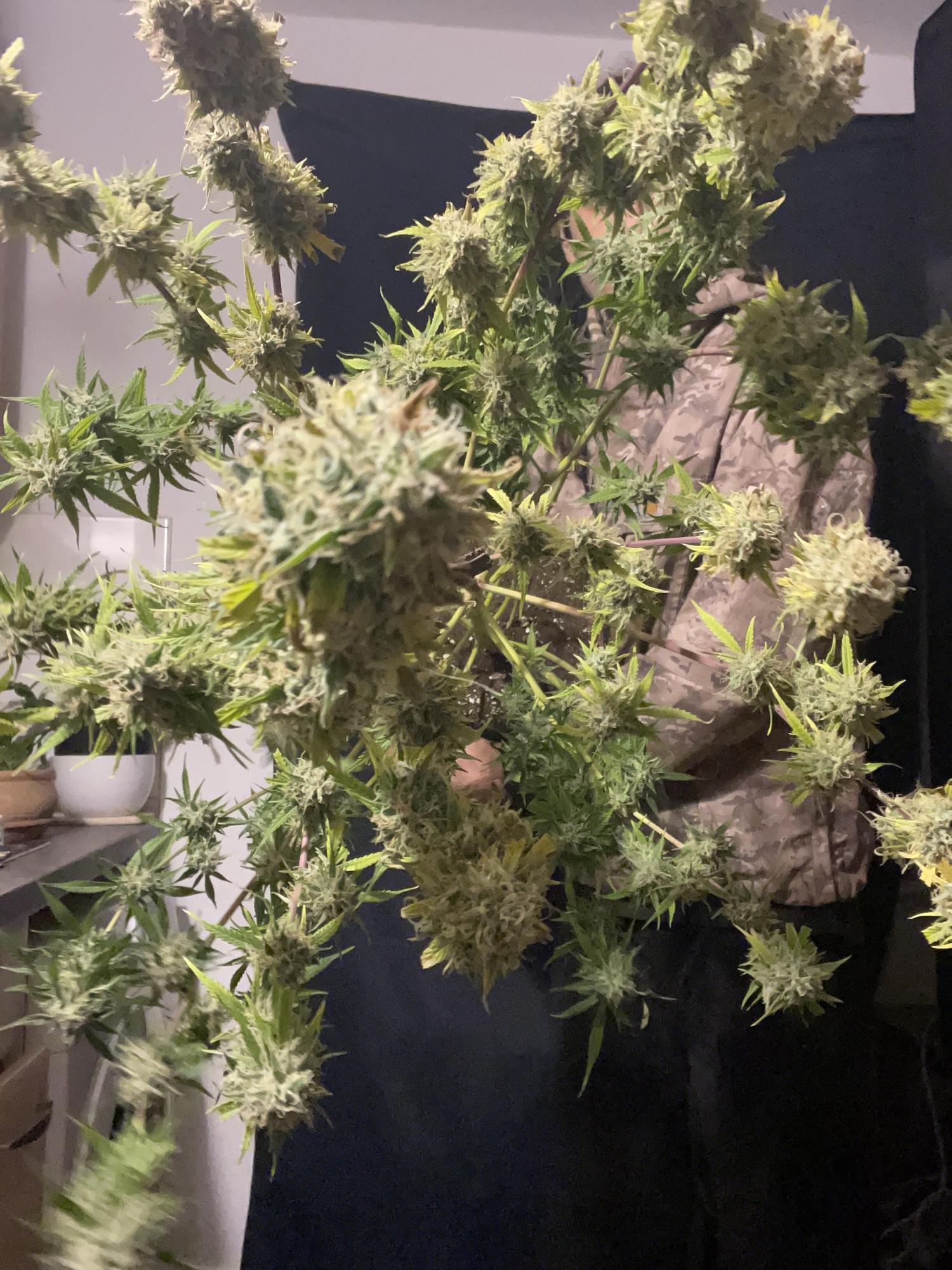 Auto Black Opium is, generally speaking, a violet version of Auto Opium. To achieve this beauteous coloring without losses in potency or yield, we have crossed Auto Opium with a rare population of Colombian Sativa, both purple-colored and rich in THC. After numerous selection cycles, the result was stabilized and presented as Auto Black Opium – a tremendously potent Indica with shocking resin production rate and delicious berry aroma. At present, this strain belongs to top most exotic Indica varieties in the world! Auto Black Opium is a perfect choice for professional growers, while beginners can recklessly enjoy handling these non-demanding vivid plants. Just as its brother, Auto Black Opium fits well for indoor growing as well as outdoor plantations, it has also shown a wondrously rich productivity in green houses. With its aggressive stench, Auto Black Opium marijuana is resistant to most insect plants. Appropriate training is restricted to non-stress techniques such as LST or ScroG, which allow to multiply your yield almost by 1.5 sometimes. This strain generously produces resin, with dense colas handy for making potent hasheesh with unusual berry-like flavor. The impact that Auto Black Opium smoking creates is an immobilizing stone effect that lasts for 3 hours, often accompanied with psychological revelations, euphory and daydreaming. It is also a highly efficient painkiller and anti-spasmatic agent, eliminates nausea or stress, stimulates appetite and helps forget any trouble. Those seeking for extra-potent cannabis should definitely give Auto Black Opium a try! Traditionally such mighty Indica is regarded for solo-use, since speech and movements get rather problematic. More appropriate for night use.