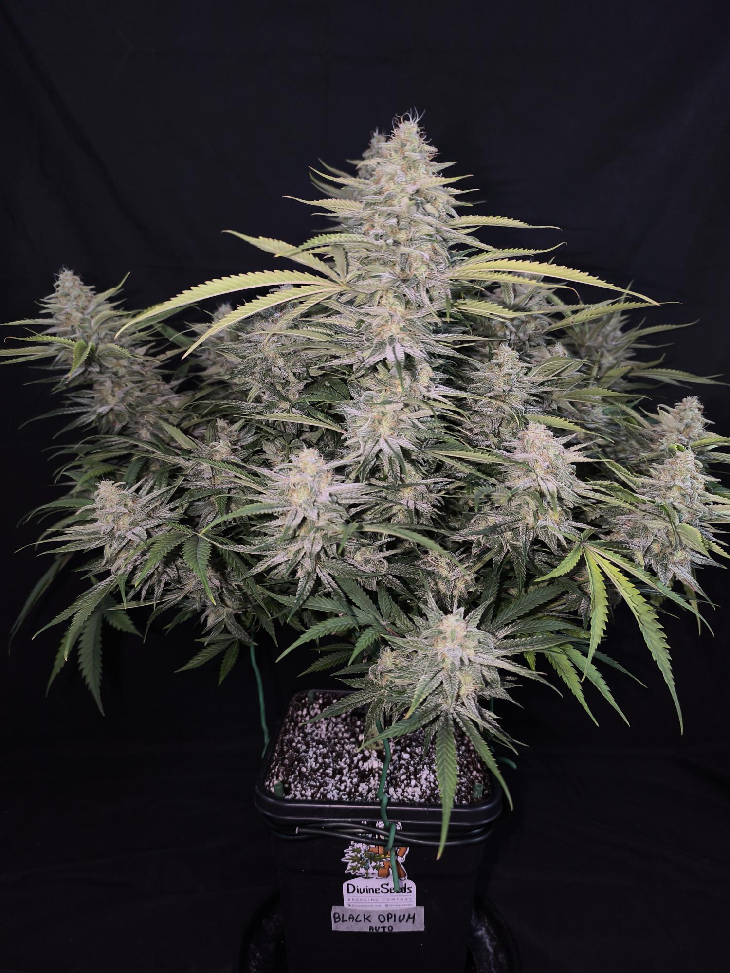 Auto Black Opium is a perfect choice for professional growers, while beginners can recklessly enjoy handling these non-demanding vivid plants. Just as its brother, Auto Black Opium fits well for indoor growing as well as outdoor plantations, it has also shown a wondrously rich productivity in green houses. With its aggressive stench, Auto Black Opium marijuana is resistant to most insect plants. Appropriate training is restricted to non-stress techniques such as LST or ScroG, which allow to multiply your yield almost by 1.5 sometimes. This strain generously produces resin, with dense colas handy for making potent hasheesh with unusual berry-like flavor.