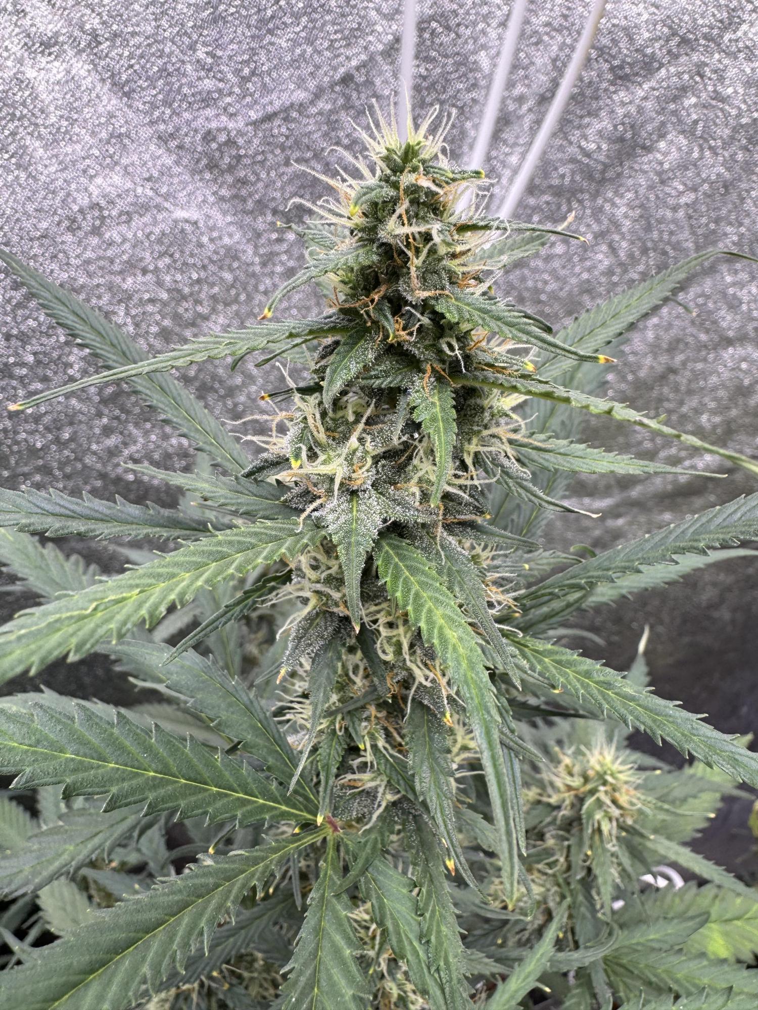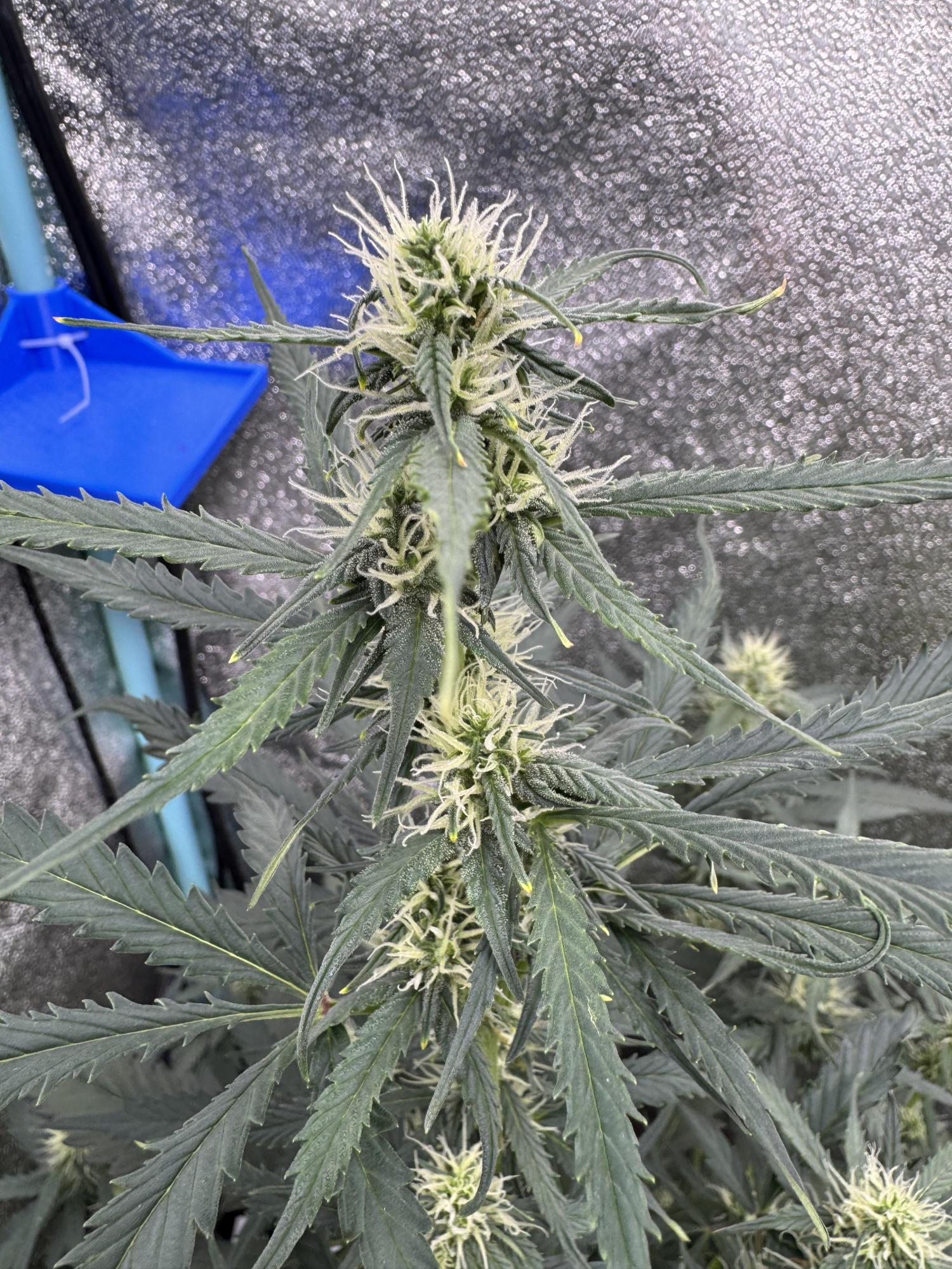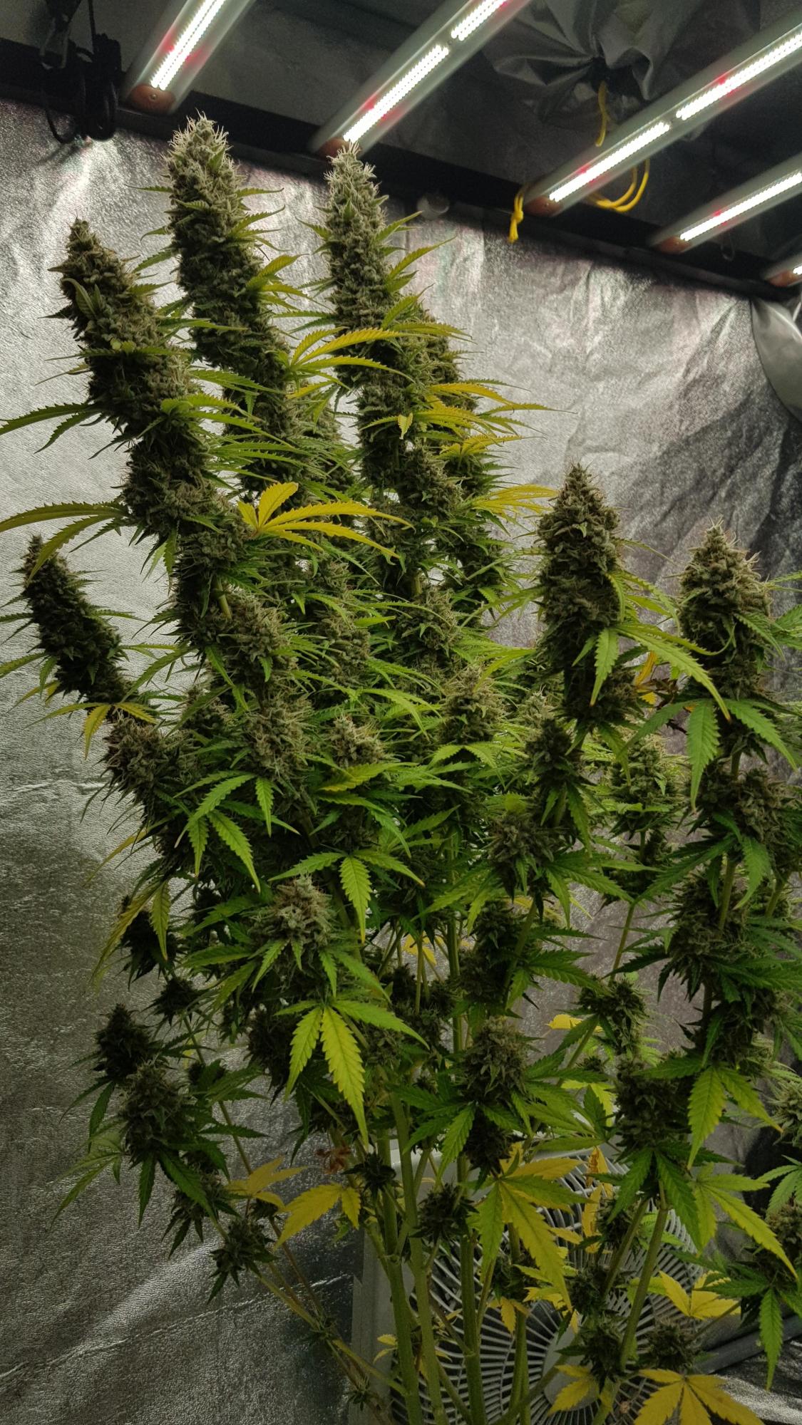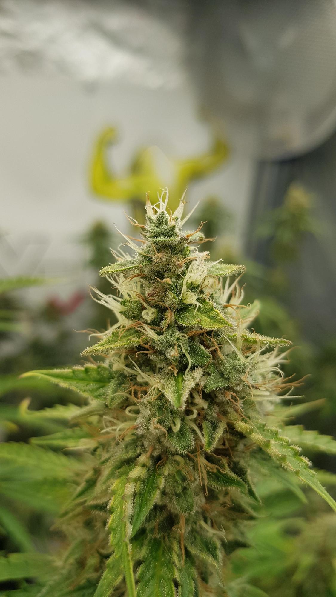Auto White Widow by Divine Seeds is an Indica-dominant hybrid that has a substantial Sativa influence. This strain was bred in co-work with Spanish breeders and can boast the best South African, Indian, Briasilian and Afghani genetics. White Widow is a legendary genotype with numerous awards, and Divine Seeds preserved its authenticity in their autoflowering version. Auto White Widow gives a strong energizing high that tunes your brain for creativity. In general, Auto White Widow is a beginner’s strain. Non-demanding, seldom any trouble with mold, fungi or temperature. Indoor plants grow mostly 70 cm tall, out of doors their height may reach 1.5 m. Use training methods to develop a more productive structure. Harvests averagely 400-600 g/m2. Blooming plants may sometimes need to be tied up to some support. When dry and cured, ripe buds have a citrus scent spiced by sandal hints. Auto White Widow causes a mellow cerebral high accompanied with muscle relaxation. In medicine, this strain is prescribed against moving disorders. muscle tension, depression, nausea, irritability, headaches, appetite disorders, glaucoma. Works as a creativity stimulant, warms up any party, sets your mind for a romantic intercourse or a beautiful walkabout. The effects last for 1.5 hours and fit for any daytime.