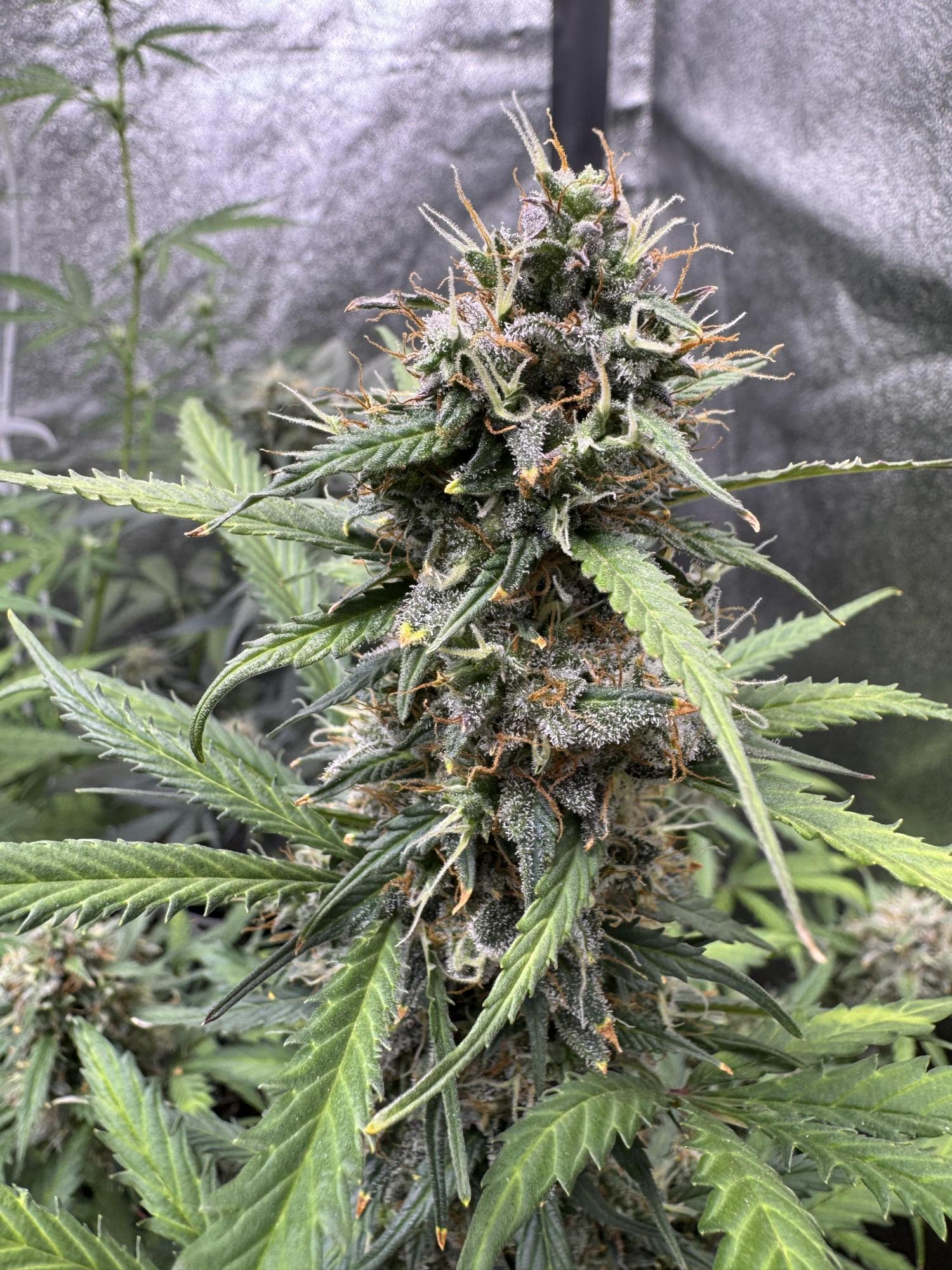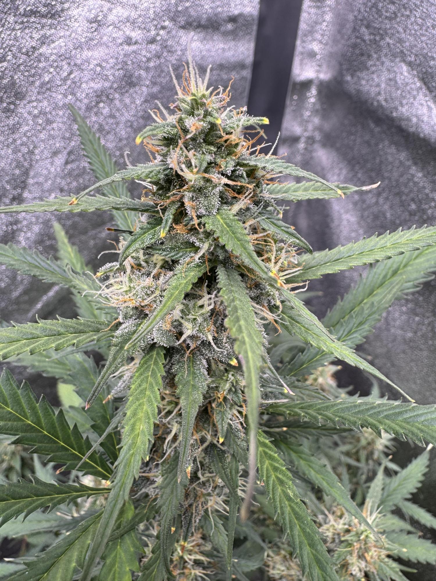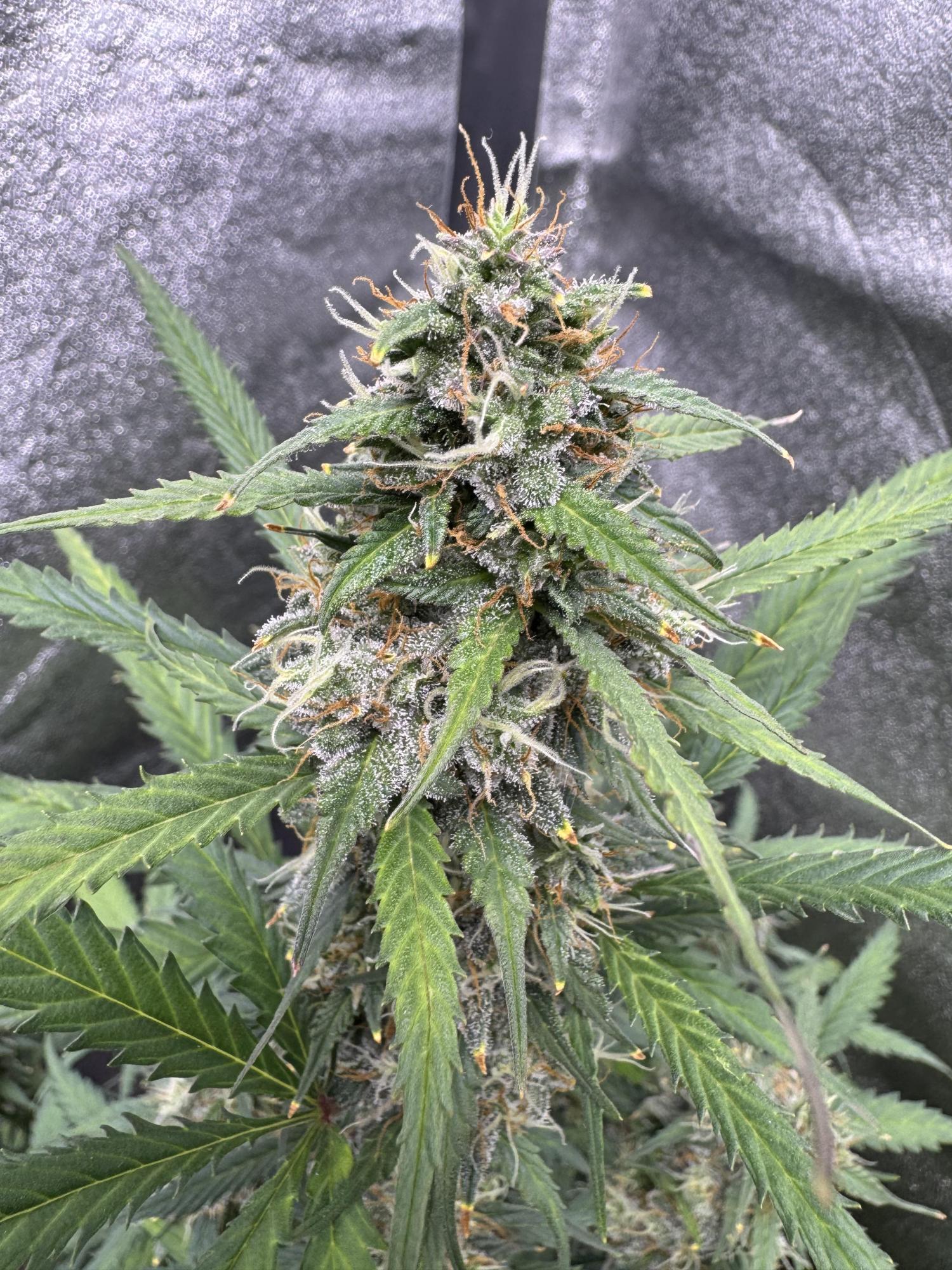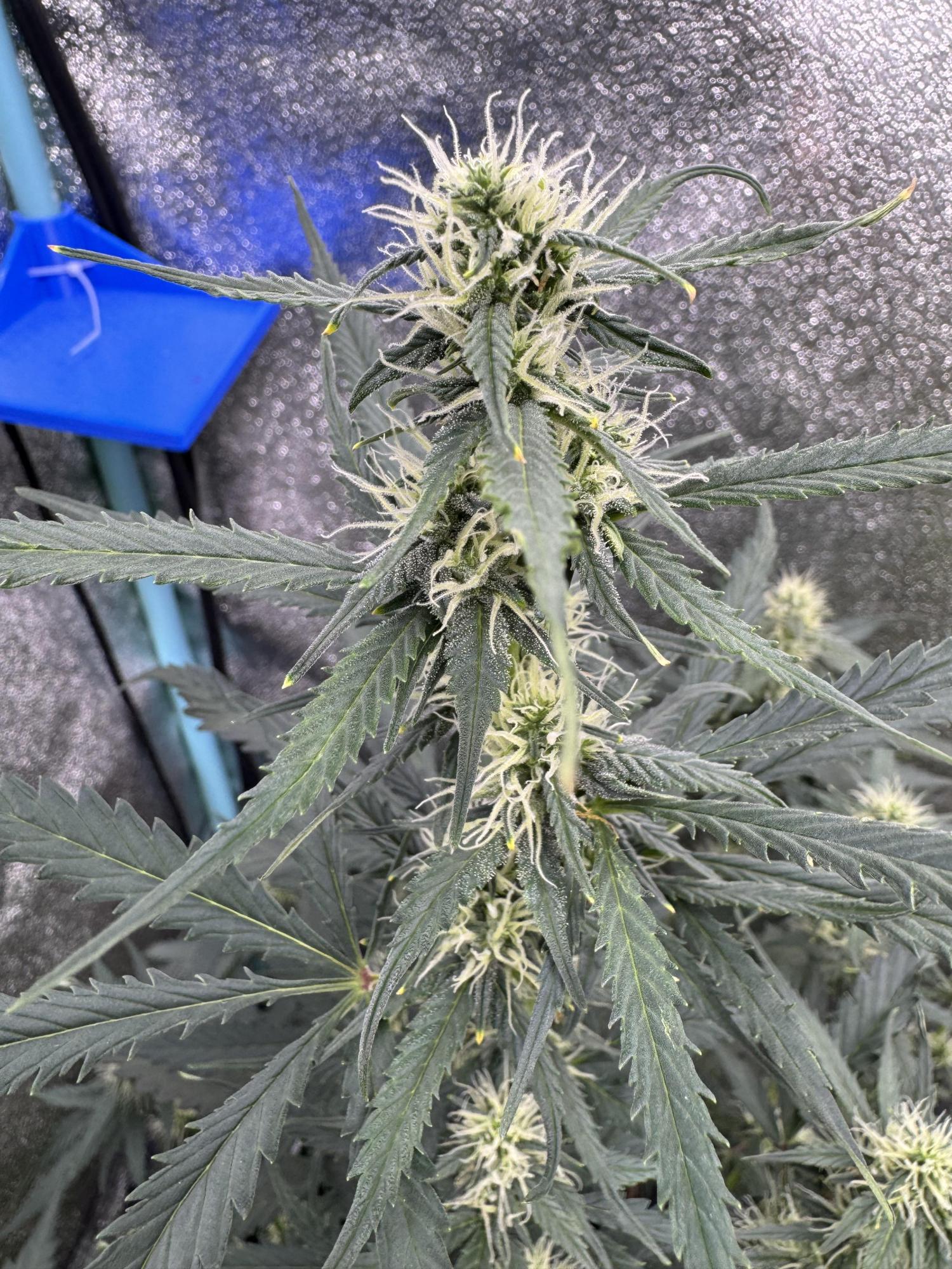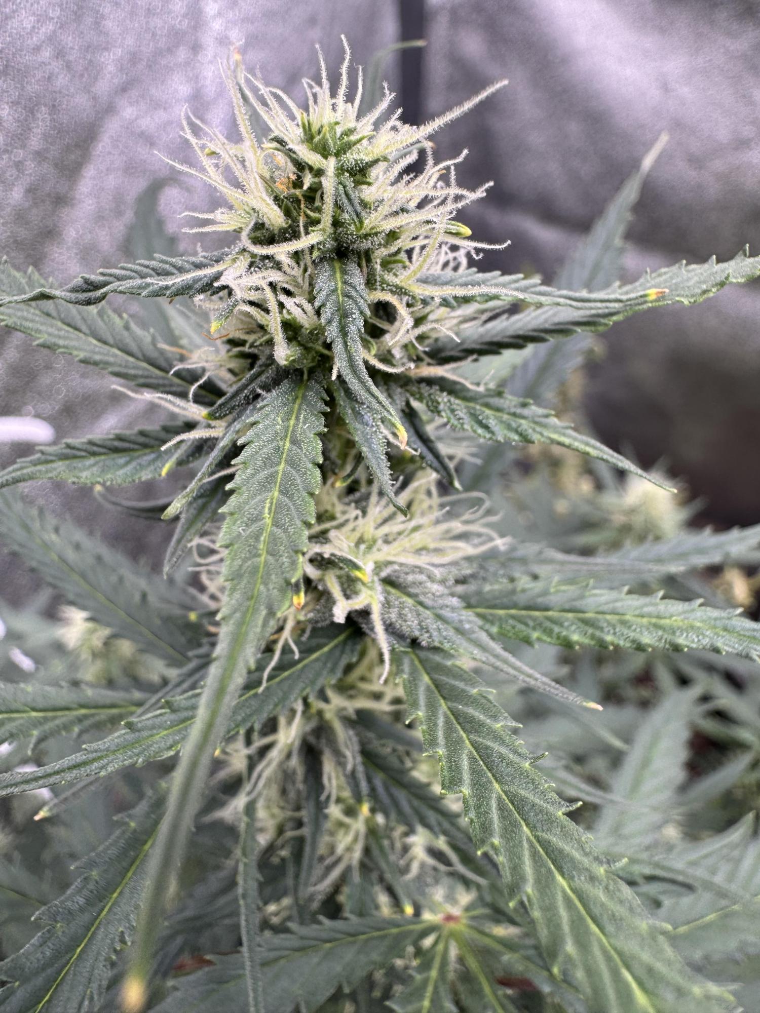 Auto White Widow by Divine Seeds is an Indica-dominant hybrid that has a substantial Sativa influence. This strain was bred in co-work with Spanish breeders and can boast the best South African, Indian, Briasilian and Afghani genetics. White Widow is a legendary genotype with numerous awards, and Divine Seeds preserved its authenticity in their autoflowering version. Auto White Widow gives a strong energizing high that tunes your brain for creativity. In general, Auto White Widow is a beginner’s strain. Non-demanding, seldom any trouble with mold, fungi or temperature. Indoor plants grow mostly 70 cm tall, out of doors their height may reach 1.5 m. Use training methods to develop a more productive structure. Harvests averagely 400-600 g/m2. Blooming plants may sometimes need to be tied up to some support. When dry and cured, ripe buds have a citrus scent spiced by sandal hints. Auto White Widow causes a mellow cerebral high accompanied with muscle relaxation. In medicine, this strain is prescribed against moving disorders. muscle tension, depression, nausea, irritability, headaches, appetite disorders, glaucoma. Works as a creativity stimulant, warms up any party, sets your mind for a romantic intercourse or a beautiful walkabout. The effects last for 1.5 hours and fit for any daytime.