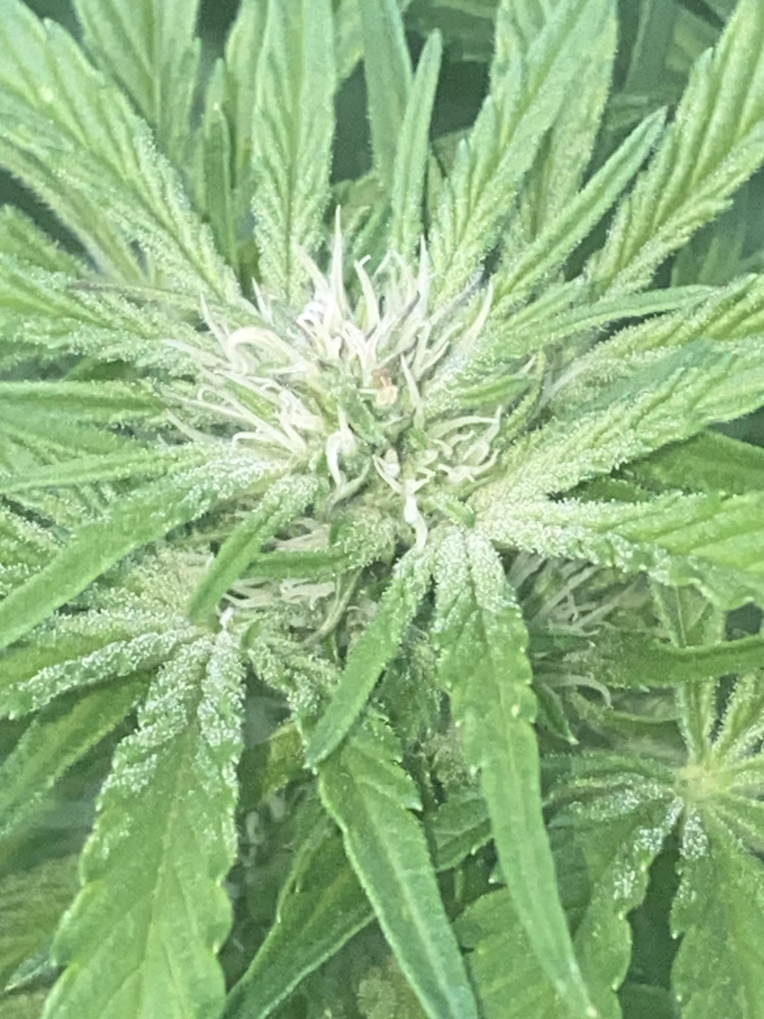 Auto White Widow by Divine Seeds is an Indica-dominant hybrid that has a substantial Sativa influence. This strain was bred in co-work with Spanish breeders and can boast the best South African, Indian, Briasilian and Afghani genetics. White Widow is a legendary genotype with numerous awards, and Divine Seeds preserved its authenticity in their autoflowering version. Auto White Widow gives a strong energizing high that tunes your brain for creativity. In general, Auto White Widow is a beginner’s strain. Non-demanding, seldom any trouble with mold, fungi or temperature. Indoor plants grow mostly 70 cm tall, out of doors their height may reach 1.5 m. Use training methods to develop a more productive structure. Harvests averagely 400-600 g/m2. Blooming plants may sometimes need to be tied up to some support. When dry and cured, ripe buds have a citrus scent spiced by sandal hints. Auto White Widow causes a mellow cerebral high accompanied with muscle relaxation. In medicine, this strain is prescribed against moving disorders. muscle tension, depression, nausea, irritability, headaches, appetite disorders, glaucoma. Works as a creativity stimulant, warms up any party, sets your mind for a romantic intercourse or a beautiful walkabout. The effects last for 1.5 hours and fit for any daytime.