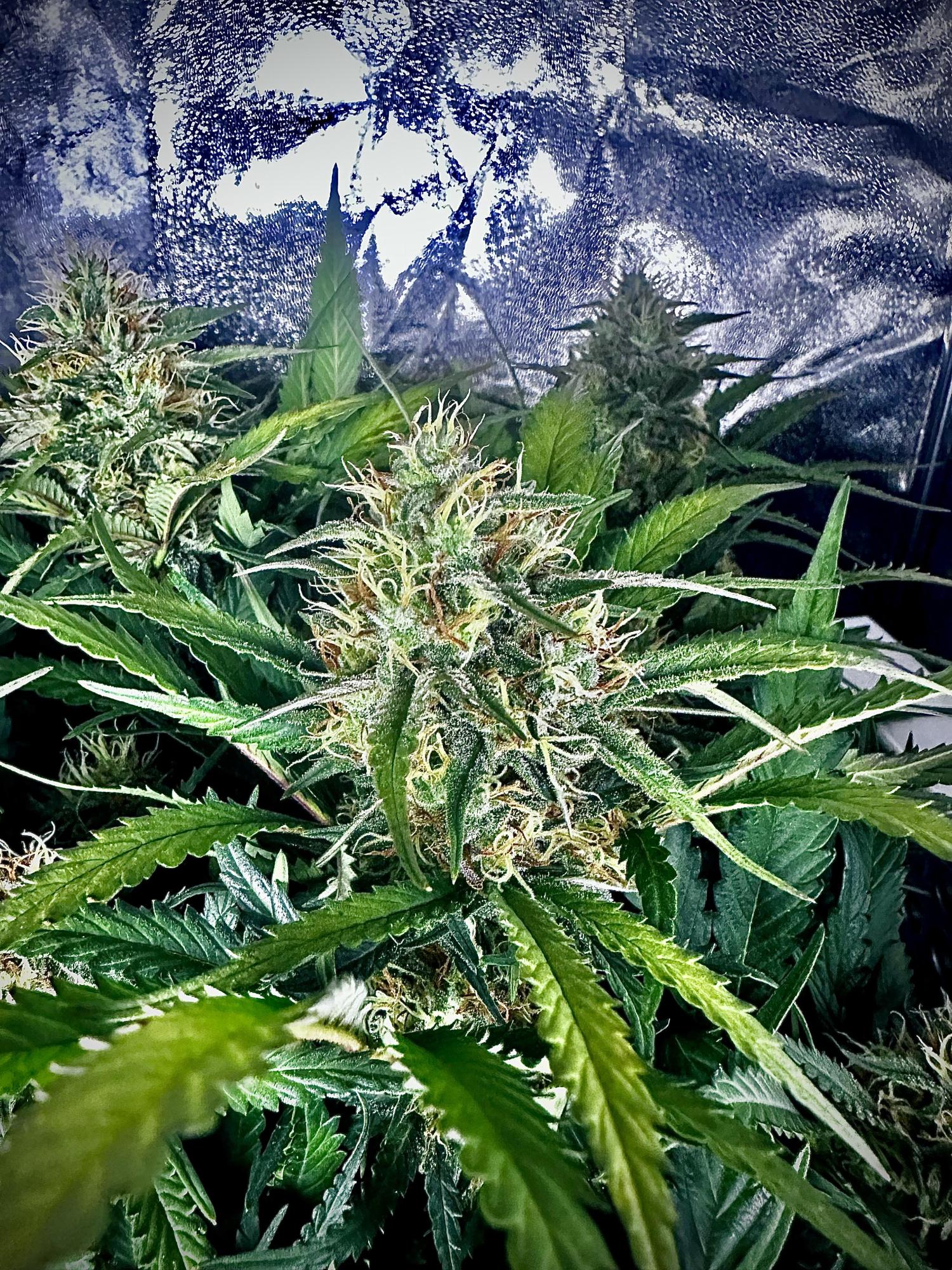 When you cross an elite cut of a photoperiod Cookies & Cream (Starfighter x Girl Scout Cookie) with one of our frostiest autoflower varieties, the result you get is amazing. A very potent autoflower with shiny leaves and even shinier trichomes. In fact, this is one of the most trichome-dense autoflowers we have come across. Auto Trichome & Cream is a vigorous plant with medium to large sized flowers. One of the phenotypes has beautiful purple hues. The flowers give a fruity scent whilst growing and the doughy and creamy part of the profile comes especially to expression once the nugs have dried and cured properly. A soft and sweet taste caresses the tongue on the exhale in both vape and classic joint experiences. The fact that the plant is not too bushy makes even the trimming part a pure joy. Having these glistening flowers in your hands while you carefully trim away the sugar leaves can be numbingly satisfying. Make sure to make well use of the trim you collect, as this is a great base for hash, resin, rosin or ice-o-lator.
