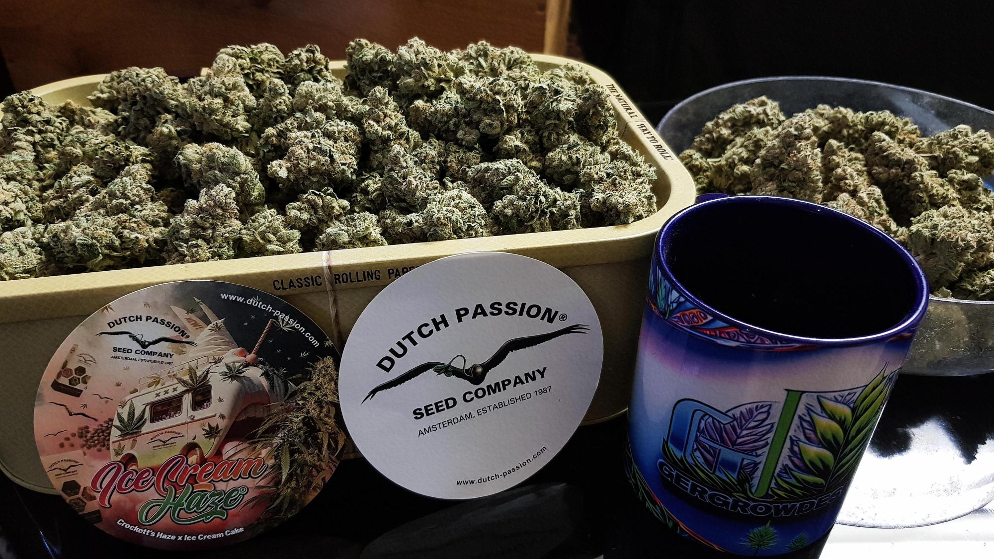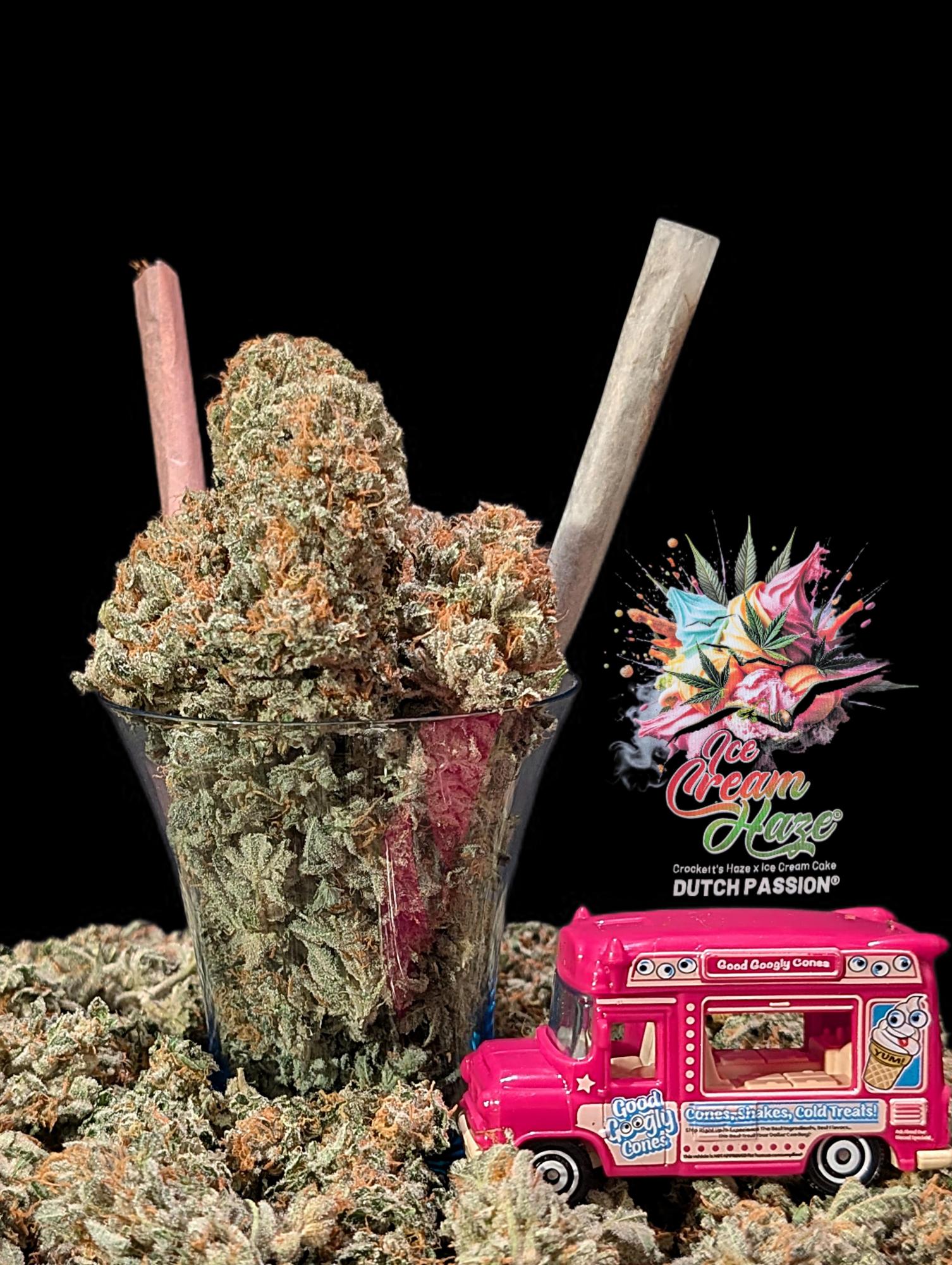We proudly present this regular and feminised F1 hybrid in the USA family of cannabis seeds. The Haze x Gelato x Wedding Cake cross is a mix of old and new, a perfect fusion of a number of classic cannabis strains that have dominated the contemporary scene for a long time! Besides the unique terpene profile, this strain can provide you with a gigantic harvest. Don't wait too long to discover the outrageous harvest potential of Dutch Passion Ice Cream Haze! Ice Cream Haze® is a new-school USA inspired Haze hybrid, based on an old-school Haze cultivar and the well known and sought-after American Ice Cream Cake genetics. This F1 hybrid cross was developed years ago by breeder Antonio, (35 cannabis cups in the last 7 years!) initially only available as a regular strain, but due to excellent feedback, is now also available as a feminised cross a few years later. The Haze mother in this crossing comes from a Crockett's Haze selection. This is a very vigorous, fast growing Sativa plant that can provide truly exceptional yields (750g+/m2). Ice Cream Haze is a tropical fruit-smelling Haze variety that is very sticky and also tastes fantastic. The Ice Cream Cake (Gelato x Wedding Cake) pollinators (both male and female) are truly two gems. Both are vigorous, stable and take root quickly. In addition to a powerful terpene profile, the mother always provides compact, easy to cut, potent buds with a beautiful appearance. And the father is one with a strong aroma (especially after a good 'stem rub'), powerful branches and a good masculine top structure with the bonus of very frosty sugar leaves. Combining two different cultivars (one of which is a full Sativa and the other a slightly more Indica-dominant hybrid) creates a truly unique product. Ice Cream Haze is therefore suitable for lovers of fast-growing plants with generous yields of strong smelling/tasting weed.