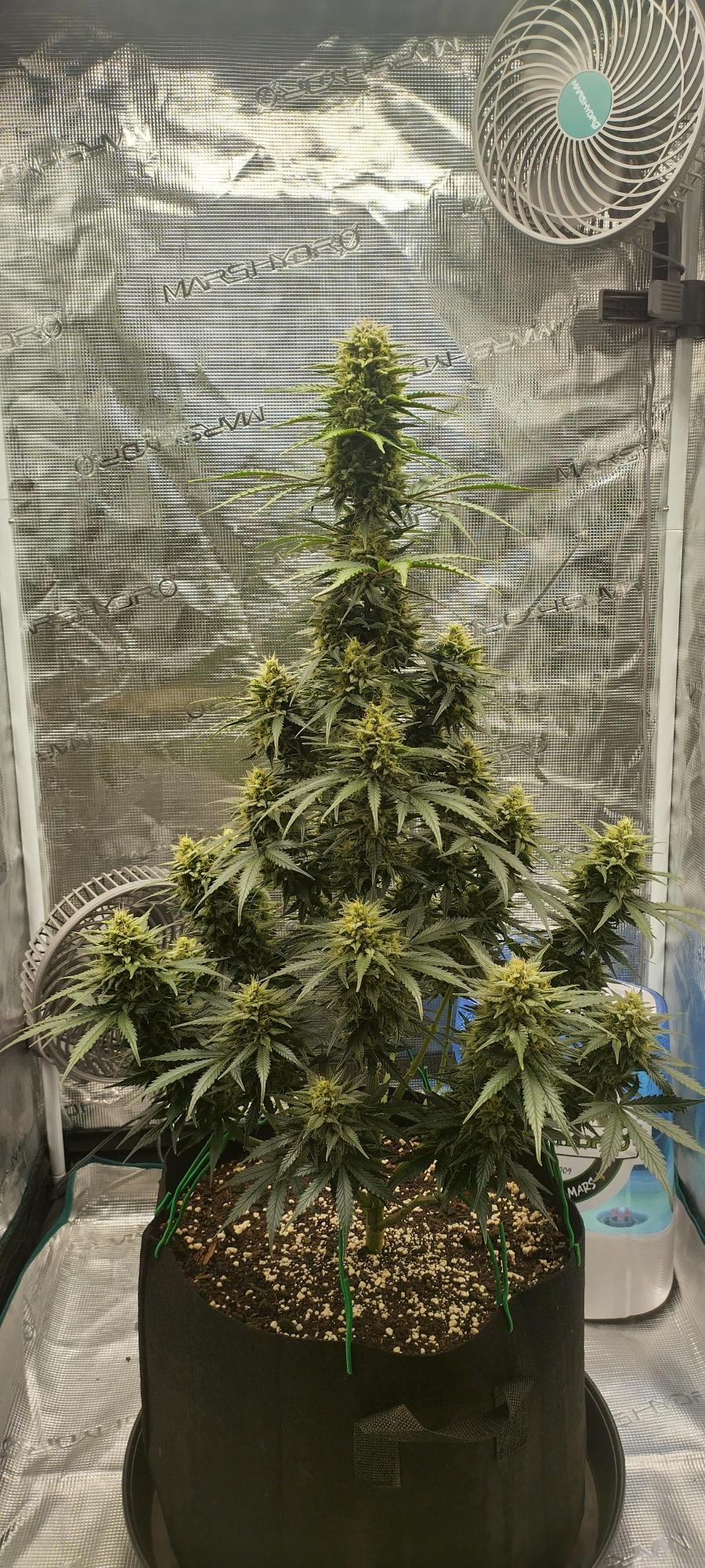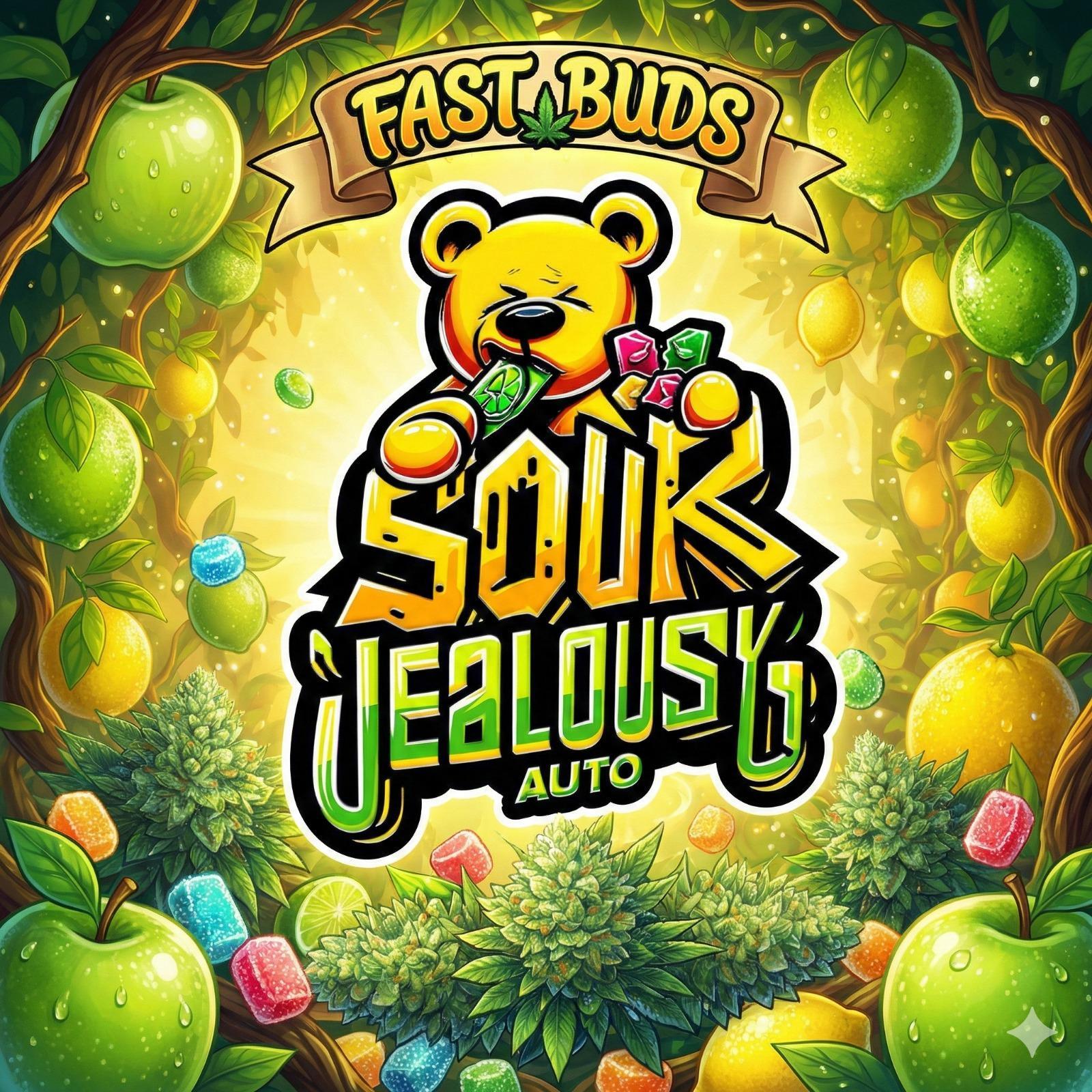 Sour Jealousy Auto is a bright sativa dominant powerhouse, packing 29% THC and reaching heights up to 63 inches (150cm). She’s perfect for experienced growers interested in strong sativa autoflowers — delivering an energizing head high and positive, creative vibe, pungent sour aroma, and smooth, earthy floral flavor. She puts out exceptionally high yields (up to 600g/m2 indoors and more outdoors depending on pot size) of bright, neon green buds drenched in frosty trichomes.This autoflower prefers to be warm and could pose problems cultivated in colder climates, making it crucial to watch temperatures. A mild feeding solution will help prevent nutrient burn, as she’s somewhat nutrient sensitive. Expect a huge stretch at the end of veg — training in early veg is recommended to maintain height. Maximize indoor space up to 20cm by putting a filter and exhaust fan just outside the grow tent, which will also help mask its super potent scent. Planting her with aromatic companion plants (including marigold, basil, garlic, mint, and dill) can help cover her aroma outdoors.