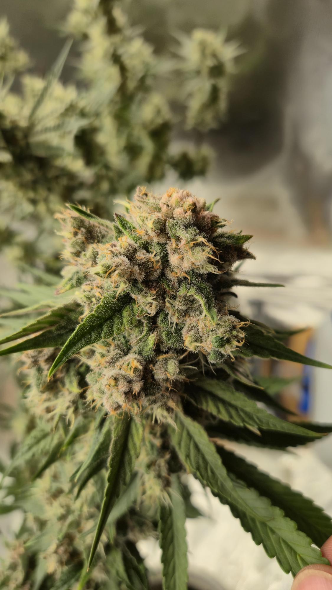 Embark on a sensational journey with Tropicana Cookies FF (Fastflowering), a remarkable blend perfectly suited for both novices and experts in cultivation. Adaptable to a myriad of climates, this strain promises abundant yields, reaching up to a generous 650 g/m2. An easy grower, the Tropicana Cookies FF stands tall, showcasing its inherent hybrid vigor and demanding minimal maintenance. At the heart of its appeal is the enticing THC content, a compelling 28%, guaranteeing a potent and enduring experience. With each inhale, anticipate an invigorating burst of energy, clarifying the mind and nurturing creativity. However, its strength is not merely cerebral. As time progresses, a profound body relaxation ensues, perfect for alleviating pain and infusing joy. Whether you need a daytime pick-me-up or a night of restful sleep, Tropicana Cookies FF is an unparalleled choice. Visually, the strain is nothing short of a masterpiece. Its blossoms are vibrant with deep purples, occasionally lightened by shades of pink and blue. Complementing these hues are dark-orange pistils, weaving their way through the dense and compact buds. A thick resin layer envelops these flowers, giving them an almost fluffy appearance. When the buds are cracked open, they release an aroma reminiscent of a sweet candy mix, accentuated by notes of citrus peels and sandalwood. Its growth pattern is as impressive as its effects. This feminized photoperiod strain, leaning towards its Indica genetics, boasts a robust main cola surrounded by shorter side branches. Despite its compact nature, Tropicana Cookies FF does not compromise on yield, ensuring growers reap bountiful harvests in just 6-7 weeks. When it comes to flavor, this strain is in a league of its own. A symphony of citrusy notes greets the palate, enveloped in sweet tropical candy undertones. This sweetness is balanced by an earthy, woody depth, rounding off the taste experience perfectly. In essence, Tropicana Cookies FF is a must-try for cannabis enthusiasts seeking a blend of potency, flavor, and ease of growth.