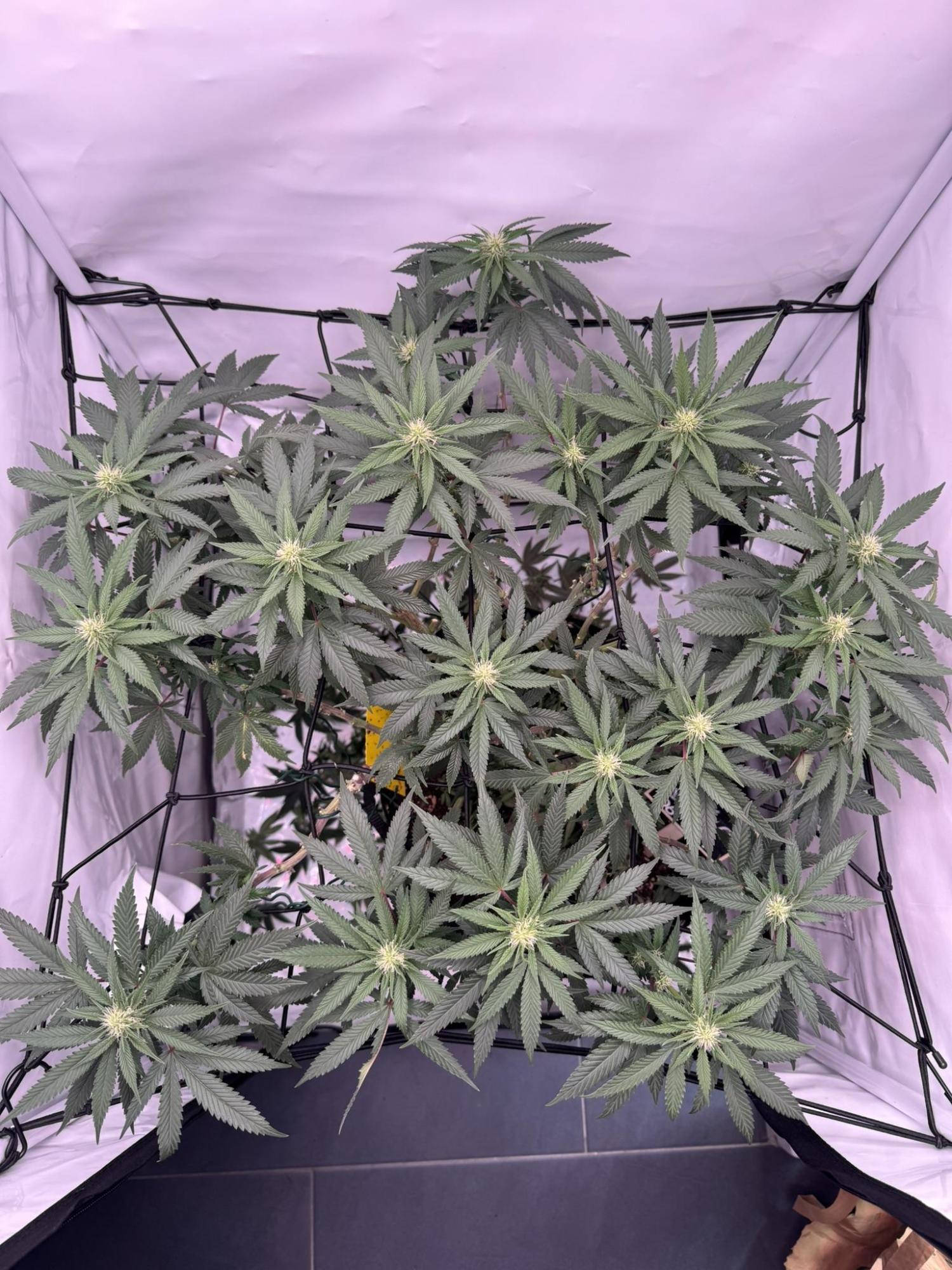 The strain grows well everywhere: on a balcony or terrace, indoors, outdoors in not too cold climate. The flowering cycle comes early and takes only 56 days. This is a   medium size plant that grows up to 80-100 cm tall.  It develops sugary top bud .