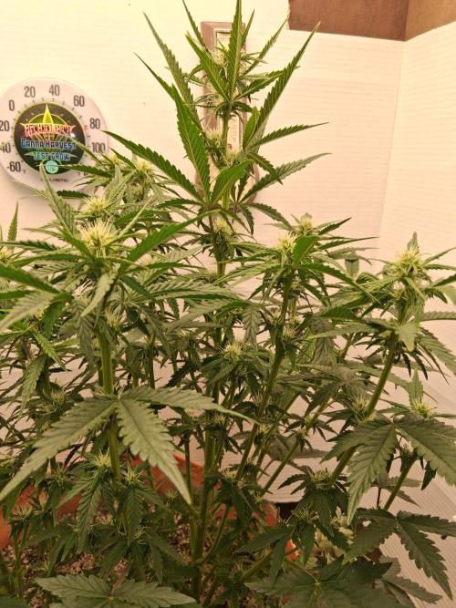 Moth Man by Gnome Automatics is a feminized autoflower hybrid known for its striking color and high resin production. The strain is a 50/50 indica-sativa mix with parentage from Black Strap and Coal Miner’s Daughter. Moth Man is recognized for its unique terpene profile, offering flavors reminiscent of a Hershey chocolate bar blended with earthy pine undertones. The plants typically grow between 2-3 feet in height, depending on pot size, and have a flowering cycle of around 75-80 days. This strain is suitable for indoor, outdoor, and greenhouse environments, with recommended light cycles of 18/6 or 20/4. The dense resin coverage often hides the plant’s vibrant colors until harvest, creating a visually stunning result
