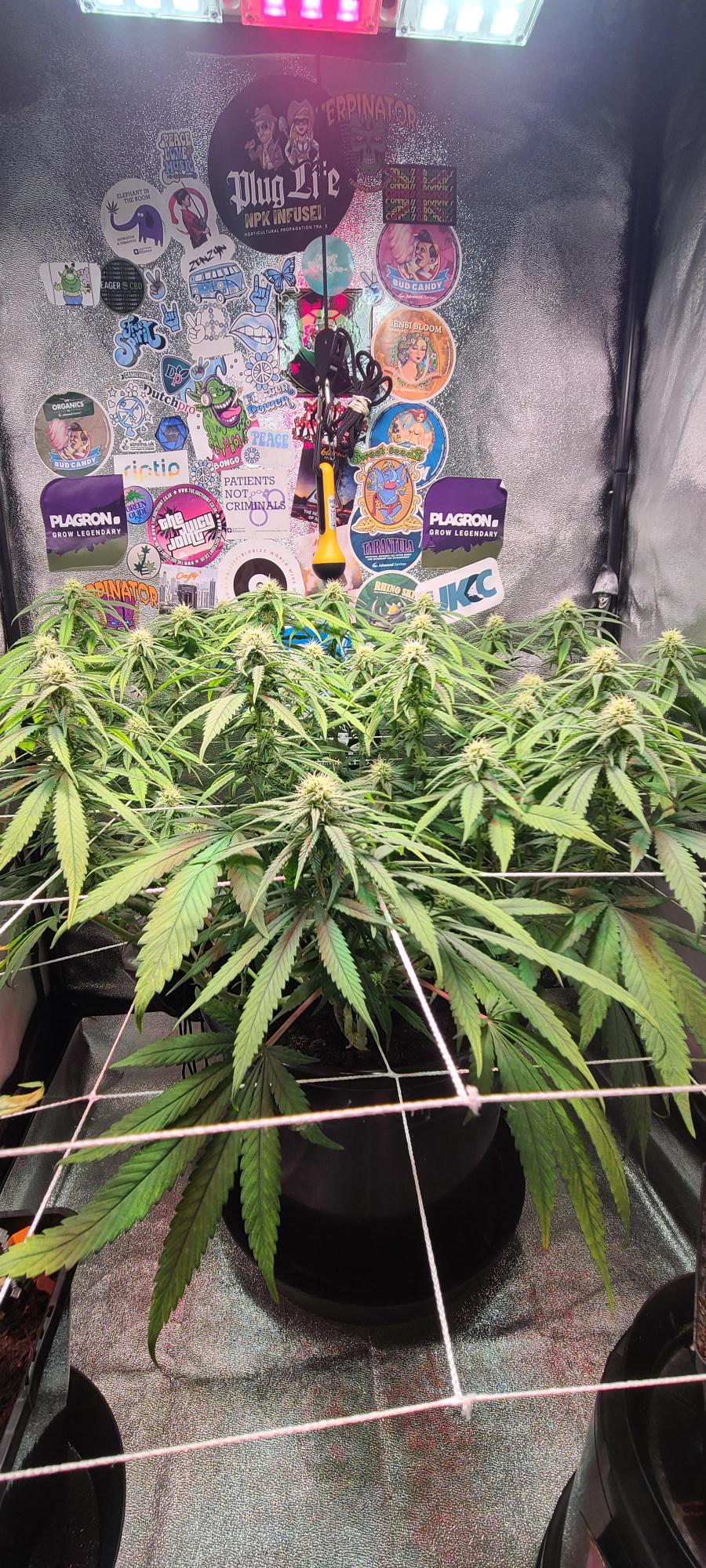The plant grows relatively tall but still moderate for an indoor grow, maybe with the use of topping for the lower spaces, the stretch of the Dark Phoenix is very vigorous during the first weeks of flowering and will produce some strong branches that will catch up on the sides to form on a nice crown effect. The flowers are as vigorous as the stretch, forming some beautiful and big preflowers early in the flowering, then they will connect together to form some long colas and explode in a beautiful sativa foxtailing bouquet with a very decent yeild and colors that can turn from blue to deep dark black leaves on some plants, a beautiful expression of colors.