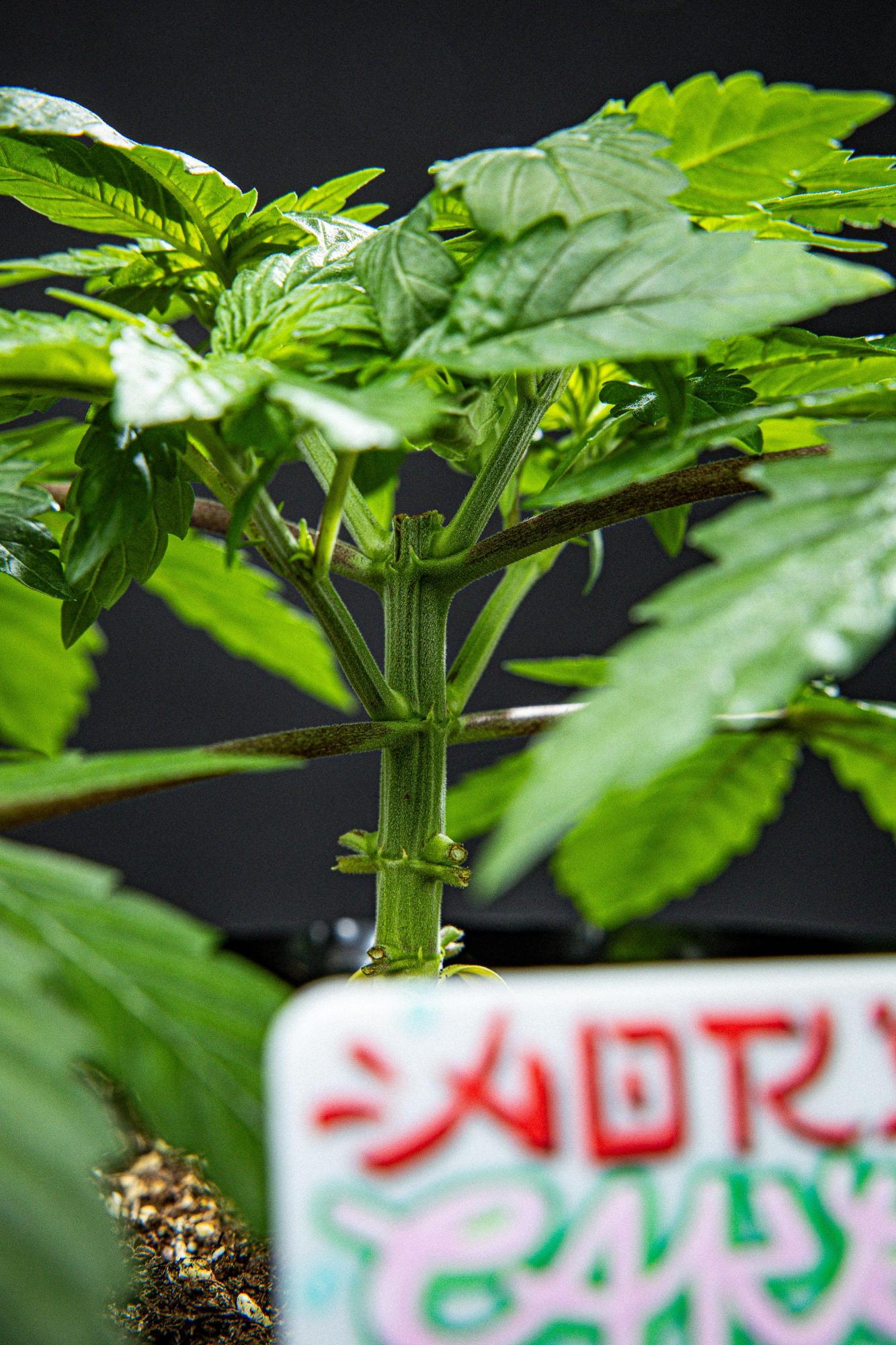 The Nori Cake is an exciting new addition to the Green House Seed Catalog. Getting its name from the famous Japanese algae used in snacks and sushi all over the world, it is a very exciting variation of flavors that will make all the Kush Lovers happy. The Nori Cake is a cross of the Kush Mint from Seed Junky, known for its potency and strong taste, with our Wonder Pie and its strong OG Kush background. A perfect mix that brings back the essence of the old school kushes, a strong mossy and earthy smell, similar to a humid forest soil after the rain. A beautiful expression of aromas that all explode in the mouth in a powerful and long lasting taste, similar, in a way, to the old school Afghani Kush flavors, but enhanced to new levels with the combination of both strains. The Nori Cake grows in a strong plant that develops vigorous secondary branches; the stems are thick and standing strong in their position with a closed angle between the stem and secondary branch. The inflorescences will regularly grow all along the stem, making a beautiful and compact flower with an OG shape full of trichomes. The stem and flower of the Nori Cake can sometimes turn darker hues at the end of flowering, making it a beautiful plant to witness at the end of its cycle. The effects are strong and fast. As you exhale the first puff, you will notice the earthiness and a potent buzz that will fill all your muscles and create a heavy feeling in your extremities. It is recommended for experienced smokers, rather than beginners. It will give you the munchies and red eyes for a while, making it perfect to enjoy a movie night.