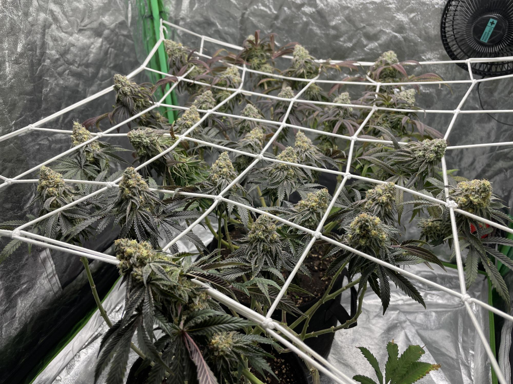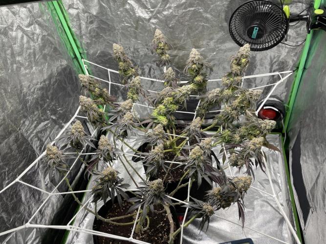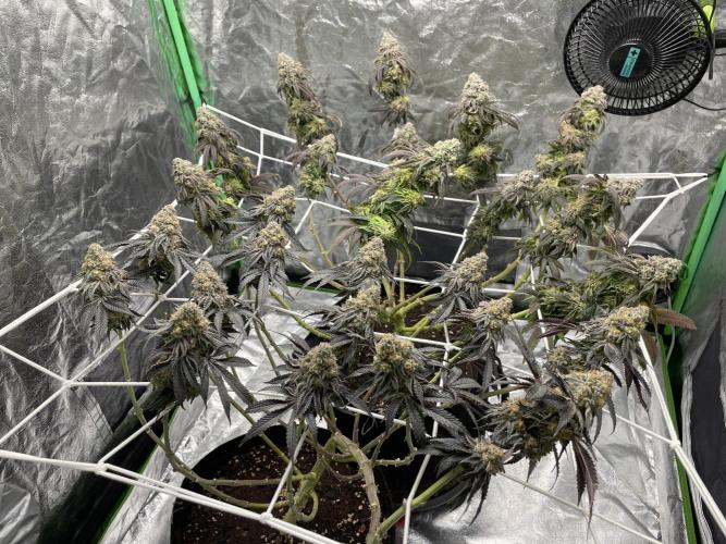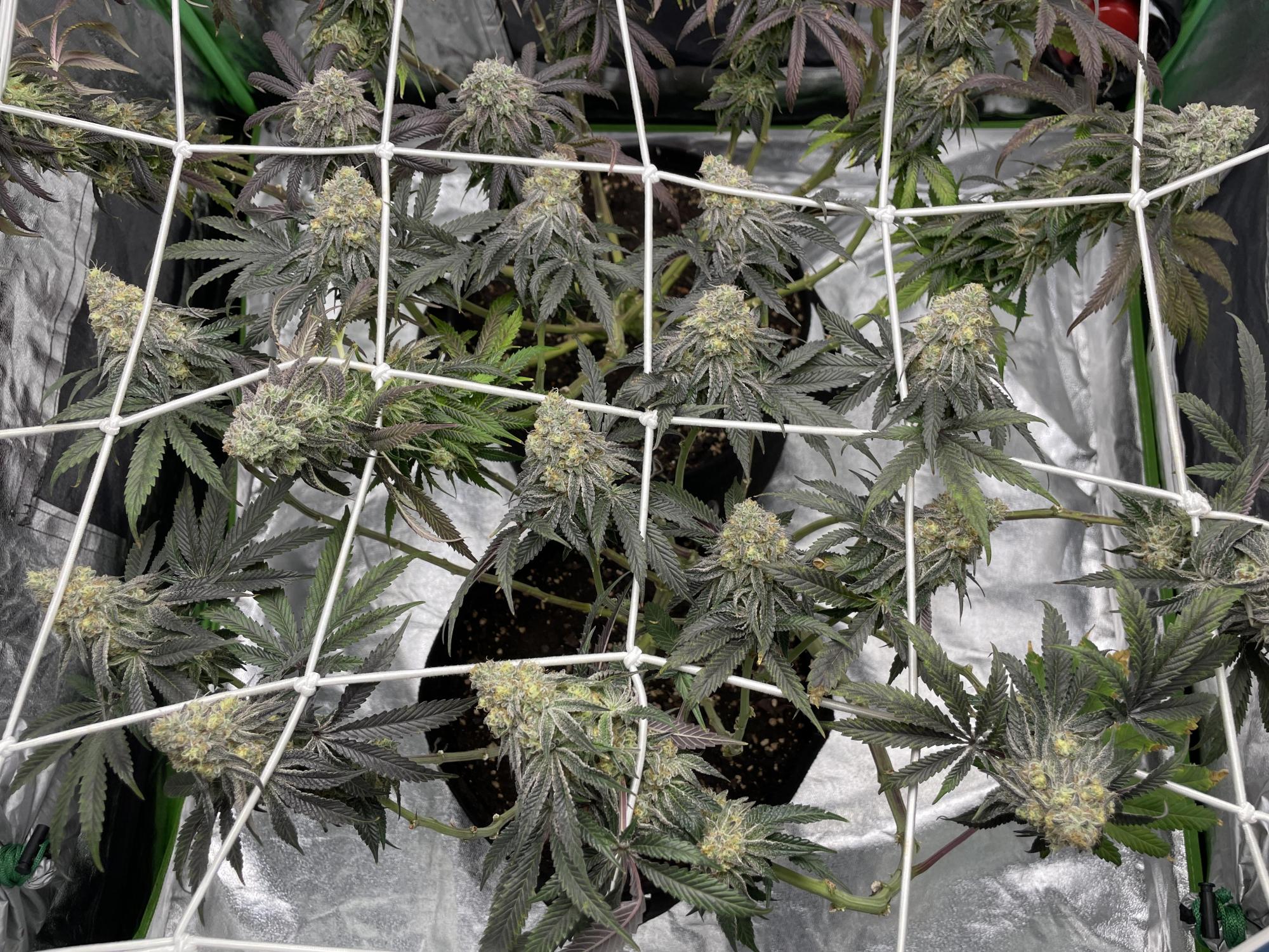 The Velvet moon is the result of our selection of the famous Dosidos from USA, crossed with one of the latest breeding project made by Franco, the Holy punch. The result is a great vigorous, and amazingly esthetic plant with a very sweet and potent smell. The stretch is moderated, perfect for indoor and outdoor growers, with a very good branching on the side that can hold steady without support until the end of flowering. It will form some beautiful and very compact round flowers with big round calyx from the Holy Punch and the density and resin production from the Dosidos. The smell is a perfect balance of both parents, it has the pungent sweetness like fresh fruit with perfect maturation of the holy punch, combined with some acid lemony and earthiness from the dosidos. A perfect combination of acidness and sweetness with the creamy earthiness on the exhale of the smoke makes it a great flavourful smoke.