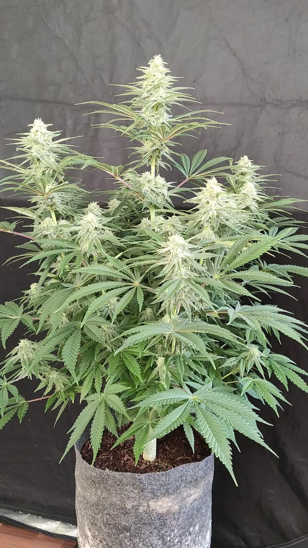 The plant grows like a white widow with a little stretch, short and bushy but with good side branches.